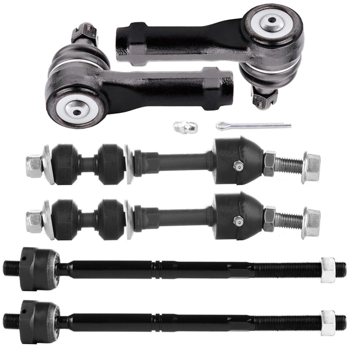 [SUSPENSION KIT FITMENT] 2004-2005 for Ford for F-150. [SUSPENSION KIT CONTAINS] 2 x ES3691 Front Outer Tie Rod End, 2 x EV463 Front Inner Tie Rod End, 2 x K80337 Front Sway Bar End Link. [SUSPENSION SYSTEM FUNCTION] Suspension system transmits the force and force twist acting between the wheel and the frame, buffering the impact force transmitted from the uneven road surface to the frame or the body, and attenuating the vibration caused thereby. [SUSPENSION PARTS FEATURES] Made from forged steel, with plastic insert, filled with grease, Parts are phosphatized to ensure strength and enhance aesthetics.Other fine products