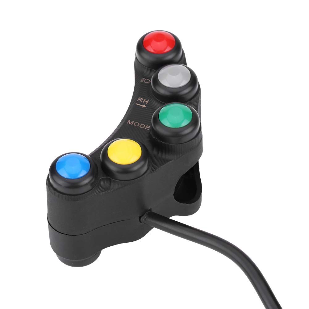 Motorcycle handlebar switch featuring 7 essential functions, compact size yet feature packed.. Latching action (ON/OFF) button can be used for general lights, hazard light, fog light, or headlight control.. The switch comprises four momentary action buttons; use these for controlling the horn, executing turn signals, starting or killing the ; the remaining two buttons manage o volume.. Constructed from quality plastic material that resists and ; ensures long lasting durability.. Universally applicable on motorcycles, scooters, ATVs, or snowmobiles having a 22mm (7/8 inch) diameter handlebar..Other fine products