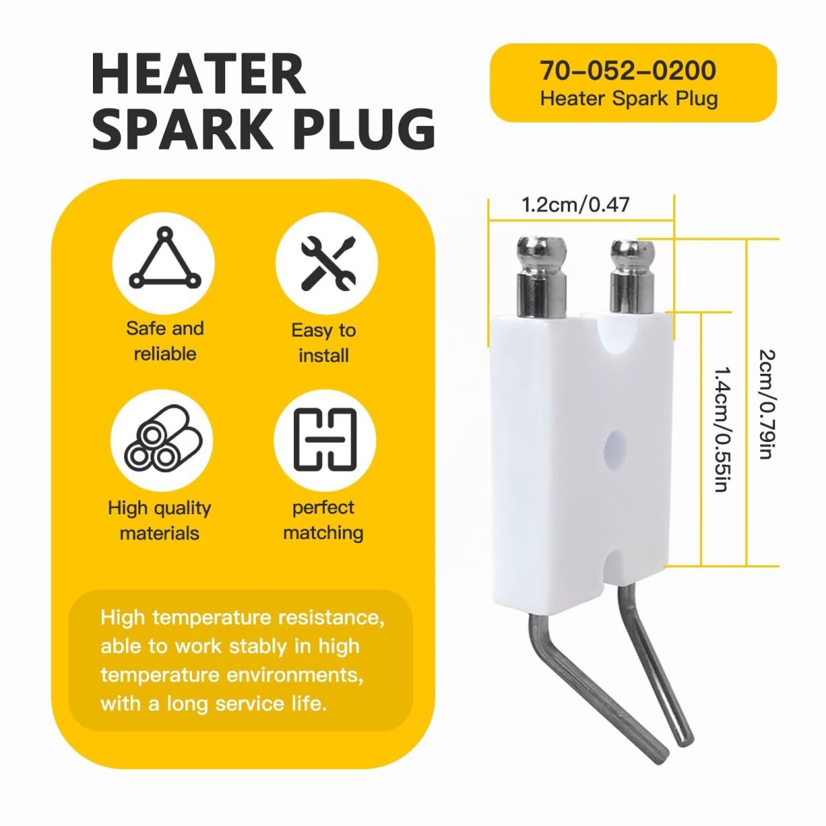Replacement Part Number: 70-052-0200 ignitor/spark plug is used on 125k, 175k, 215k and 400k btuoil fired heaters. Compatible Models: for Dayton: 3VE50,3VE50A, 3VE50B, 3VE51, 3VE51A, 3VE51B, 3VE52, 3VE52A, 3VE52B. Compatible Models: for ProTemp: PT-125T-KFA, PT-175T-KFA, PT-215T-KFA, for HeatHog/Remington: HH-125T-KFA, HH-175T-KFA, HH-215T-KFA,for Master: MH-125T-KFA, MH-175T-KFA, MH215T-KFA. PACKAGE INCLUDES: 2x spark plug as pictured.Other fine products