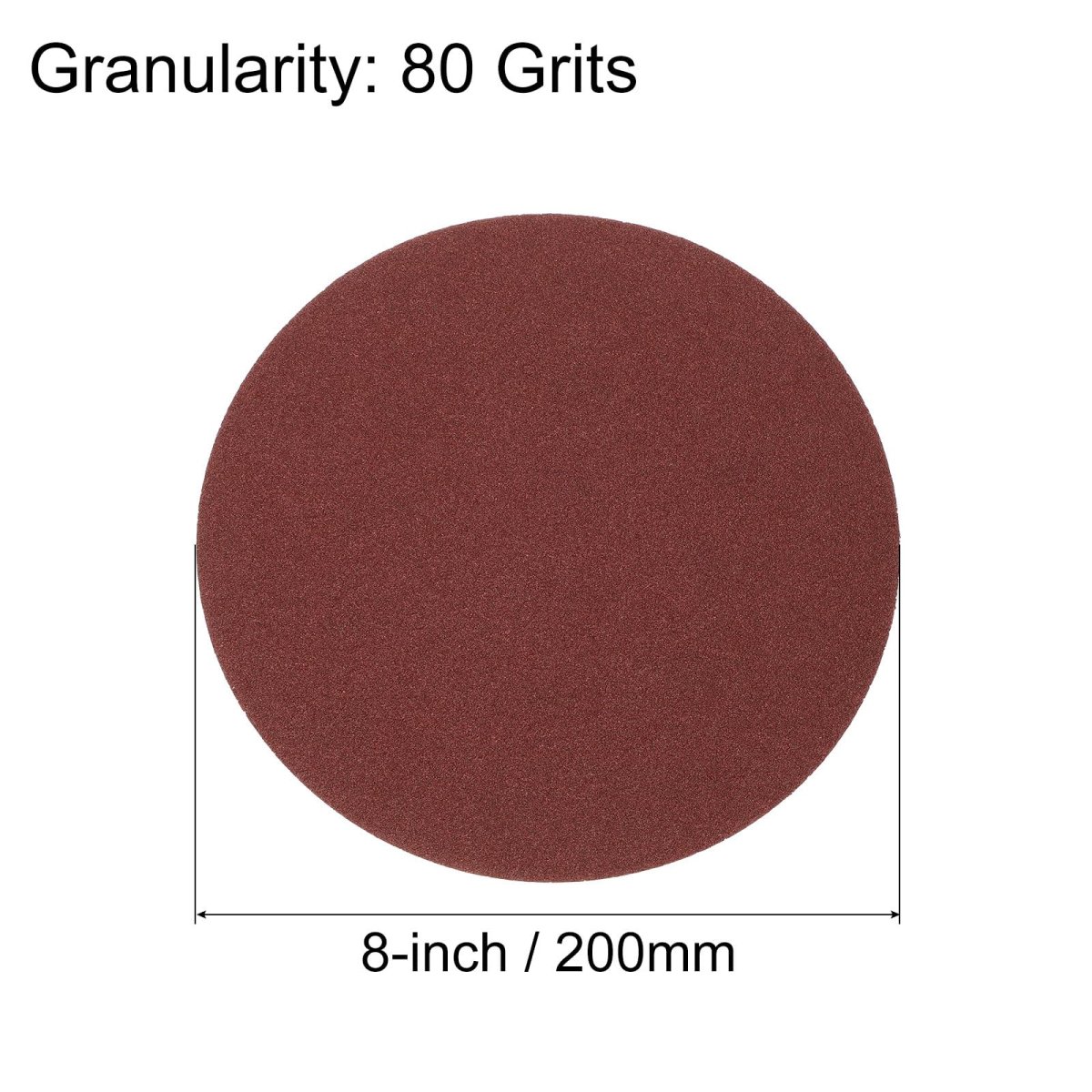 [SIZE] - The hook and loop sanding discs dia is 8-inch,80-grits. [MATERIAL] - Made with strong resin bonded aluminum oxide grain, is suitable for a fast cut and a smooth finish on your object. Adopts anti-static sand-planting craft, features a heat and moisture resistant material.. [DURABLE] - The hook and loop backing is quick and easy to replace, good adhesion ensures sandpaper won't slip during use. The backing is waterproof and has long lasting performance.. [FEATURE] - For Dry Use. The special acid coating has anti-clogging and non-loading properties, which increases the productivity and reduces material consumption.. [APPLICATIONS] - Widely used in the grinding and polishing of metal and non-metallic materials of various complex surface, including aluminium alloy, hard wood, artificial stone, plastic, glass and more. Great for paint stripping and removal and woodworking..Other fine products