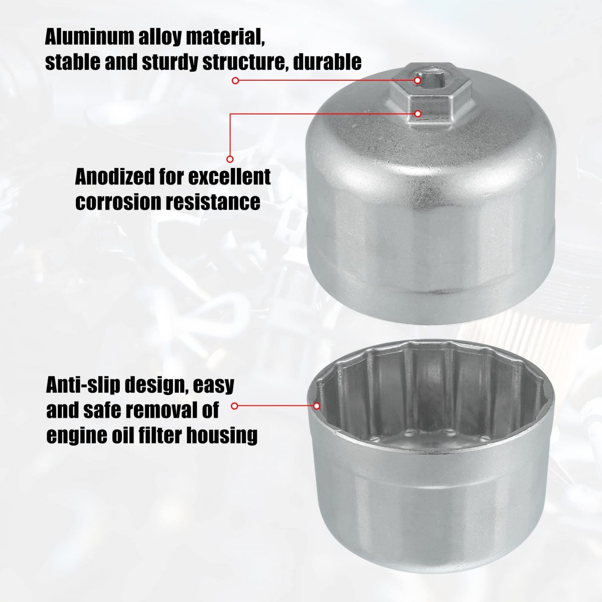 - 86mm 16 Flutes Car Oil Filter Wrench Socket Housing Cap Remover Tools For Bmw Volvo Silver Tone