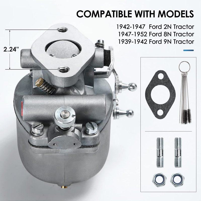REPLACEMENTSThe carburetor tractor carb replaces for Ford OEM # 8N9510C,9N9510A,B3NN9510A.For Marvel Schebler Mfg Part# TSX33,TSX241A,TSX241B,TSX241C.For Zenith Mfg Part# 0-13876,13876.For all States Ag Parts# 100763.. REPLACE FOR MODELSThe 8N9510C carburetor compatitable with 1939 1940 1941 1942 Ford 9N Tractor, 1947 1948 1949 1950 1952 Ford 8N Tractor, 1942 1943 1944 1945 1946 1947 Ford 2N Tractor with 120 cubic inch flat head engines.. EXACT OEM STANDARDThe carb is built to exact OEM standards, ensuring that the performance of the vehicle is not compromised. They are designed to fit seamlessly into the engine and provide optimal fuel efficiency and power output..Other fine products