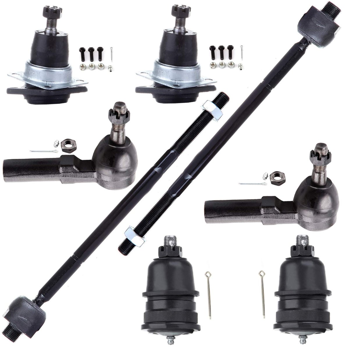 Fitment Vehicles: 1993-2002 For Chevy Camaro, 1993-2002 For Pontiac Firebird. Package Includes: 2 X ES3238RL Front Outer Tie Rod End, 2 X EV260 Front Inner Tie Rod End, 2 X K6145T Front Lower Ball Joint, 2 X K6462 Front Upper Ball Joint. Built to Last: This suspension kit features durable steel construction that help reduce vibration and noise, ensuring a smooth and quiet ride. Long-Lasting Performance: Designed for durability and consistent performance, this kit ensures your vehicle maintains its smooth handling and stability over time. Installation Notice: Ensure this suspension kit is installed by a qualified professional to ensure proper fit and function.Other fine products