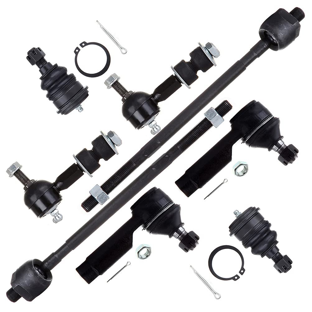 Fitment Vehicles: 1995-1999 For Nissan Maxima. Package Includes: 2 X ES3438 Front Outer Tie Rod End, 2 X EV352 Front Inner Tie Rod End, 2 X K9818 Front Lower Ball Joint, 2 X K9824 Front Sway Bar End Link. Built to Last: This suspension kit features durable steel construction that help reduce vibration and noise, ensuring a smooth and quiet ride. Long-Lasting Performance: Designed for durability and consistent performance, this kit ensures your vehicle maintains its smooth handling and stability over time. Installation Notice: Ensure this suspension kit is installed by a qualified professional to ensure proper fit and function.Other fine products