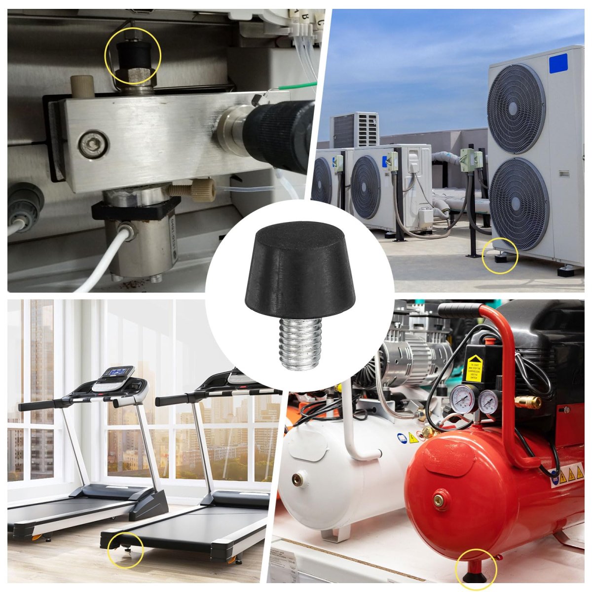 UNIVERSAL DESIGN - 0.98" x 0.71" rubber feet with M6 x 10mm Studs, set of 8 pieces adjustable furniture feet. [Material] - adjustable feet are made of rubber, are light in weight, have the characteristics of high elasticity, good wear resistance and shock resistance, can play a good buffering role, effectively protect the machine and are durable.. [Shock Absorption&Noise Reduction] - The levelling feet can absorb the vibration caused by electrical appliances, reduce noise and structural damage caused by these vibrations, protect the normal state of the equipment, and make it work more stably.. [Easy to Use] - The metal stud is a piece of termination bonded inside the rubber, which has better isolation performance. When using, just place the metal stud in the equipment hole. The rubber feet support dynamic performance and stability under lateral or lateral force.. [Wide Application] - The furniture leveller is suitable for various motors, mainly used as a damping element in industrial machinery and equipment, vibration plate equipment, fitness equipment, compressors, welding machines, engines, air conditioners, road rollers, etc..Other fine products