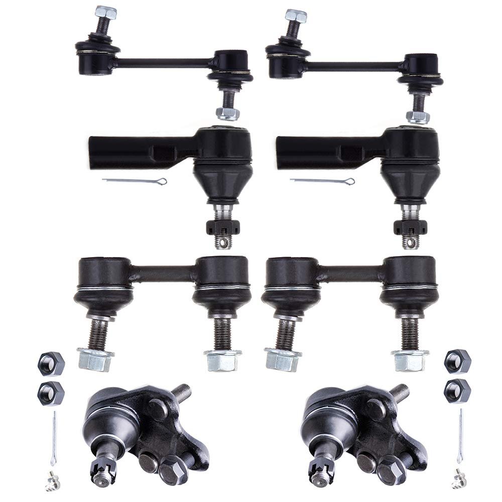 [SUSPENSION KIT FITMENT] 1994-1999 for Toyota Celica. [SUSPENSION SYSTEM FUNCTION] Suspension system transmits the force and force twist acting between the wheel and the frame, buffering the impact force transmitted from the uneven road surface to the frame or the body, and attenuating the vibration caused thereby. [SUSPENSION PARTS FEATURES] Made from forged steel, with plastic insert, filled with grease, Parts are phosphatized to ensure strength and enhance aesthetics. [SUSPENSION KIT CONTAINS] 2 K9756 Front Lower Ball Joint, 2 ES2382 Front Outer Tie Rod End, 2 K90124 Front Sway Bar End Link, 2 K9545 Rear Sway Bar End Link.Other fine products