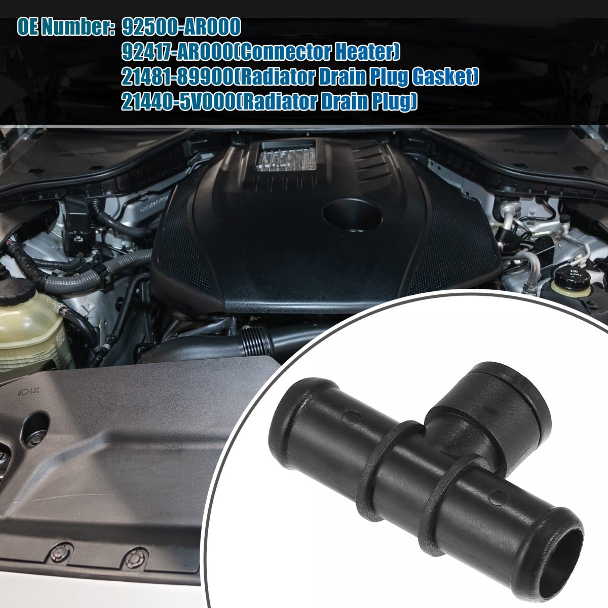 [Part Number] 92500-AR000. [Fitment] Fit for Infiniti FX35 2003-2012, for Infiniti FX37 2013, for Infiniti FX45 2003-2008, for Infiniti FX50 2009-2013, for Infiniti G35 2003-2007, for Infiniti M35 2006-2010, for Infiniti M35h 2012-2013, for Infiniti M37 2011-2013, for Infiniti M45 2006-2010 2003-2004, for Infiniti M56 2011-2013, for Infiniti Q45 2002-2006, for Infiniti Q50 2014-2019, for Infiniti Q70 2014-2019, for Infiniti Q70L 2015-2019, for Infiniti QX70 2014-2015, for Nissan 350Z 2003-2008.. [Good Workmanship] hydraulic riveting equipment, the size is more accurate, the heater hose can be better connected, not easy to fall off. The cover plate is also perfectly matched with the connector, providing better sealing.. [Accurate Size] Manufactured according to the original size data, completely matched with the car, can be directly replaced..Other fine products