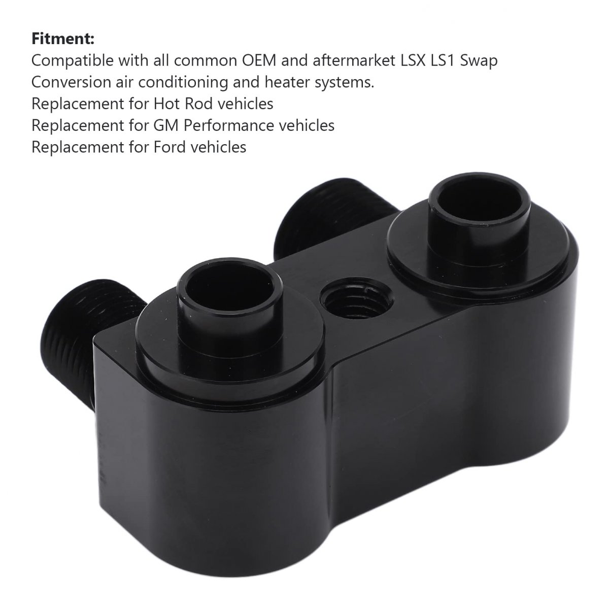 Scope of application ---- AC compressor accessories are suitable for Classic, for Hot Rod, for GM Performance, for Ford.. Excellent performance ---- AC compressor accessories have exquisite and meticulous workmanship, good performance and higher work efficiency, bringing you more convenience.. Material ---- AC compressor adapter fitting is made of 6061T6 billet aluminum alloy for high hardness, reliability and longer life.. Great Design ---- The AC compressor connector has a 90 degree turn to connect 2 male A/C line connectors (3/416 and 7/814).. Perfect Replacement ---- AC compressor accessories are compatible with all common OEM and aftermarket LSX LS1 exchange conversion air conditioning and heater systems..Other fine products