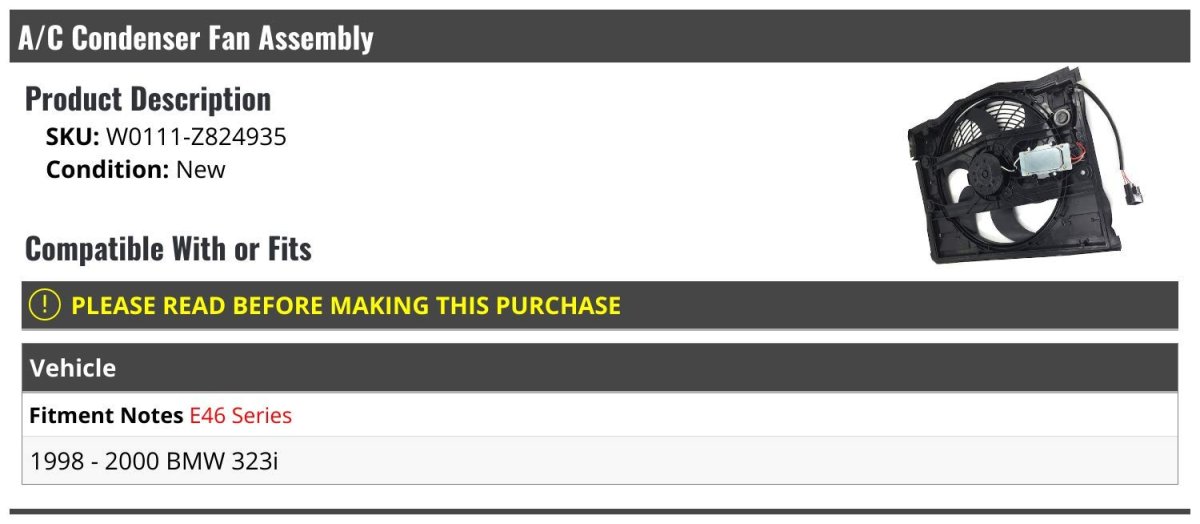 - A C Condenser Fan Assembly For 1998-2000 Bmw 323i