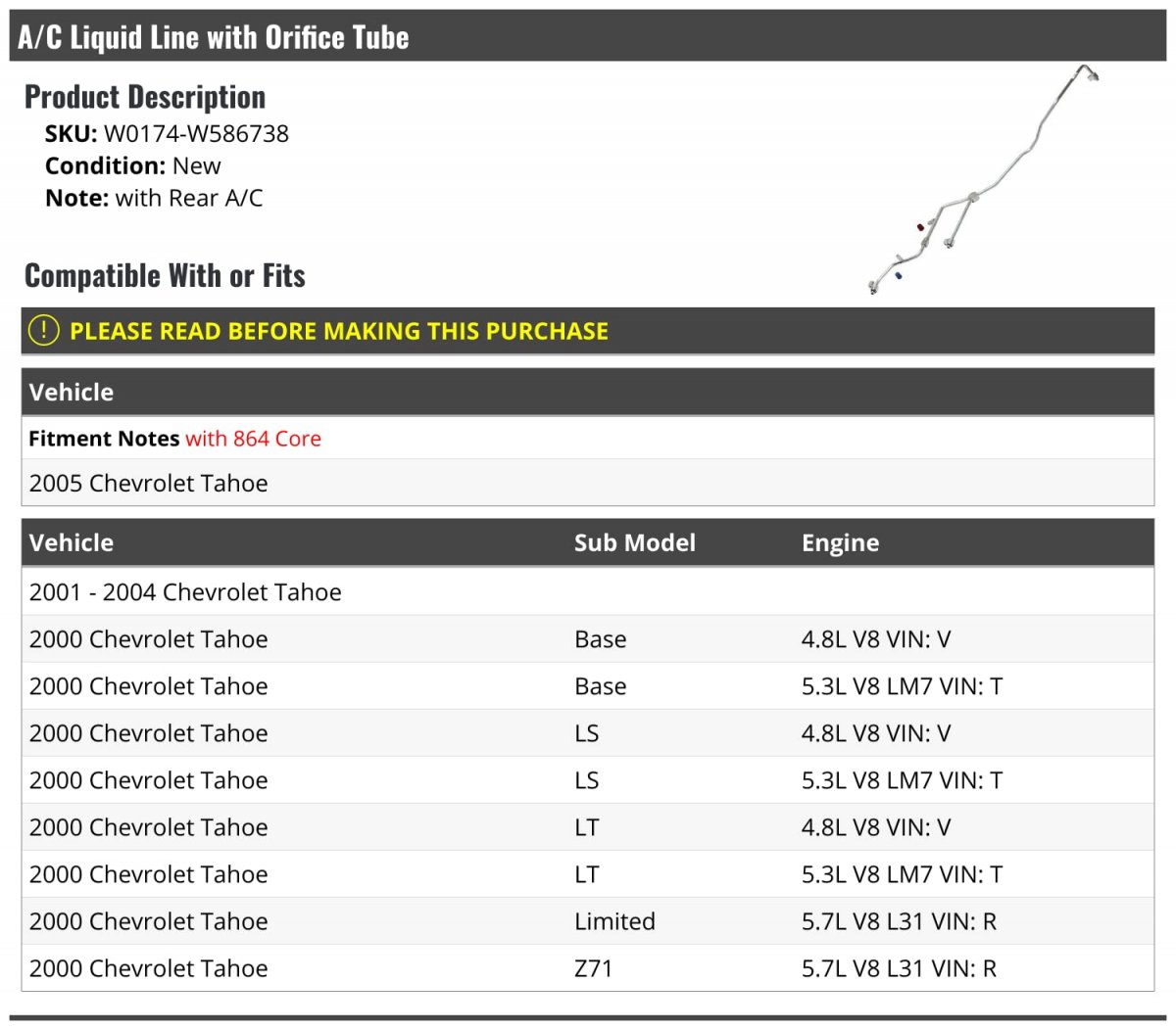 - A C Line With Orife Tube For 2000 2005 Chevy Tahoe Rear C
