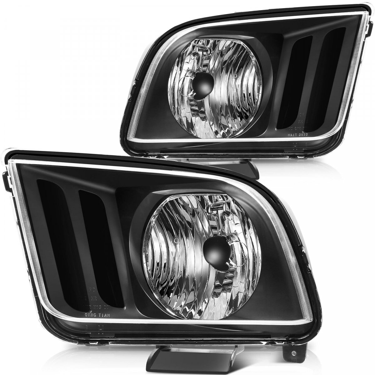 - A Pair Of Automotive Headlight Assembly Fit Ford For Mustang 2005-2009 With Black Housing Clear Lens