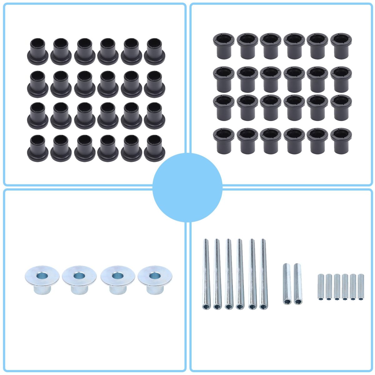 Compatiblity - A-arm bushing kit replacement for Polaris RZR 800 S 800 4 800 2008 2009-2014. Replacement for Part Number - 5436973, 5439732, 5436220, 5434551, 5433066, 5431596, 5439874, 5436832, 5436505. Package Includes - 6 x Long steel replacement sleeves, 2 x middle steel replacement sleeves, 6 x short steel replacement sleeves, 4 x steel bushings, 24 x a-arm bushings. Performance - Good sealing performance, satisfy the application requirement.Other fine products