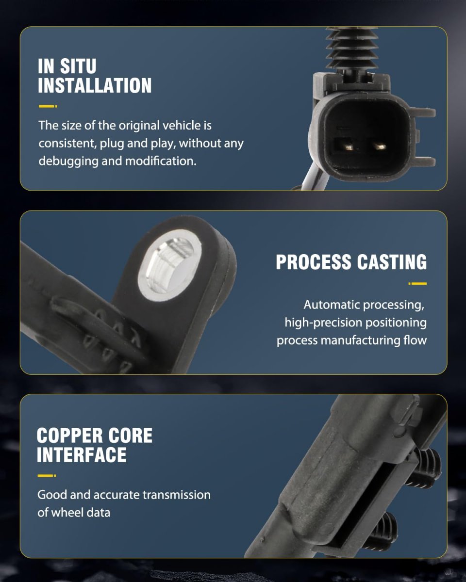 FITS THE FOLLOWING VEHICLES - This ABS wheel speed sensor fit for 2011-2014 for Dodge Durango,2011-2014 for Jeep Grand Cherokee. DETERMINE LOCKING UP OR NOT FAST- Our ABS sensors are able to measure the rotational speed of the wheels and pass them fast to the cars Engine Control Module (ECM), based on which the ECM determines if the wheels are locking up.. KEEP THE DIRECTION STABILITY- OCPTY wheel speed sensor can keep the direction stability of the car when braking as much as possible. When the driver presses the brake pedal quickly in emergency braking, the front wheel will not be locked and the steering ability still exists,avoiding the danger in front when braking..Other fine products