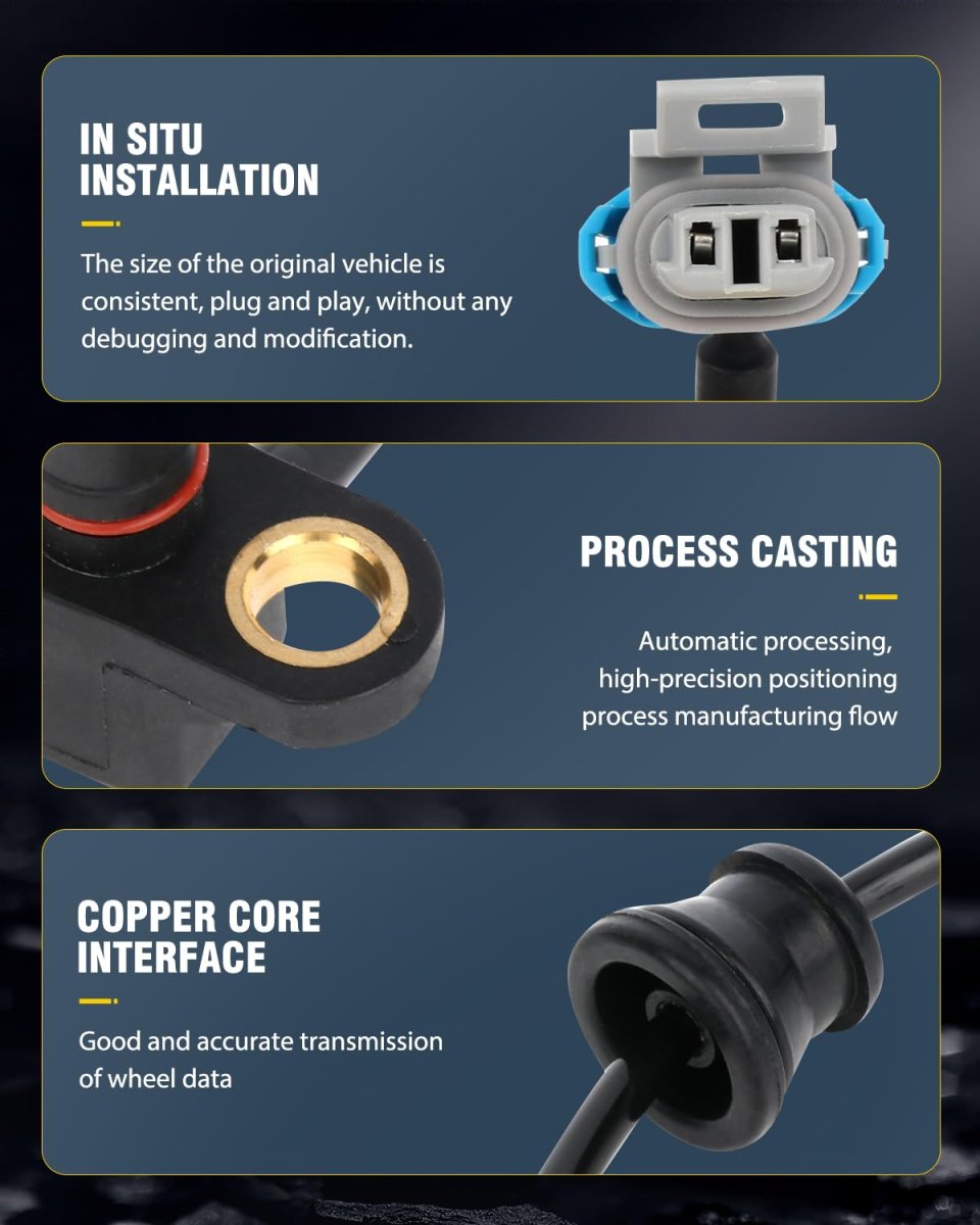 FITS THE FOLLOWING VEHICLES - This type ABS sensor fits for 2005-2006 for Chevy Equinox, 2006 for Pontiac Torrent, 2002-2007 for Saturn Vue. DETERMINE LOCKING UP OR NOT FAST - Our ABS sensors are able to measure the rotational speed of the wheels and pass them fast to the car's Engine Control Module (ECM), based on which the ECM determines if the wheels are locking up.. KEEP THE DIRECTION STABILITY - OCPTY wheel speed sensor can keep the direction stability of the car when braking as much as possible. When the driver presses the brake pedal quickly in emergency braking, the front wheel will not be locked and the steering ability still exists,avoiding the danger in front when braking..Other fine products