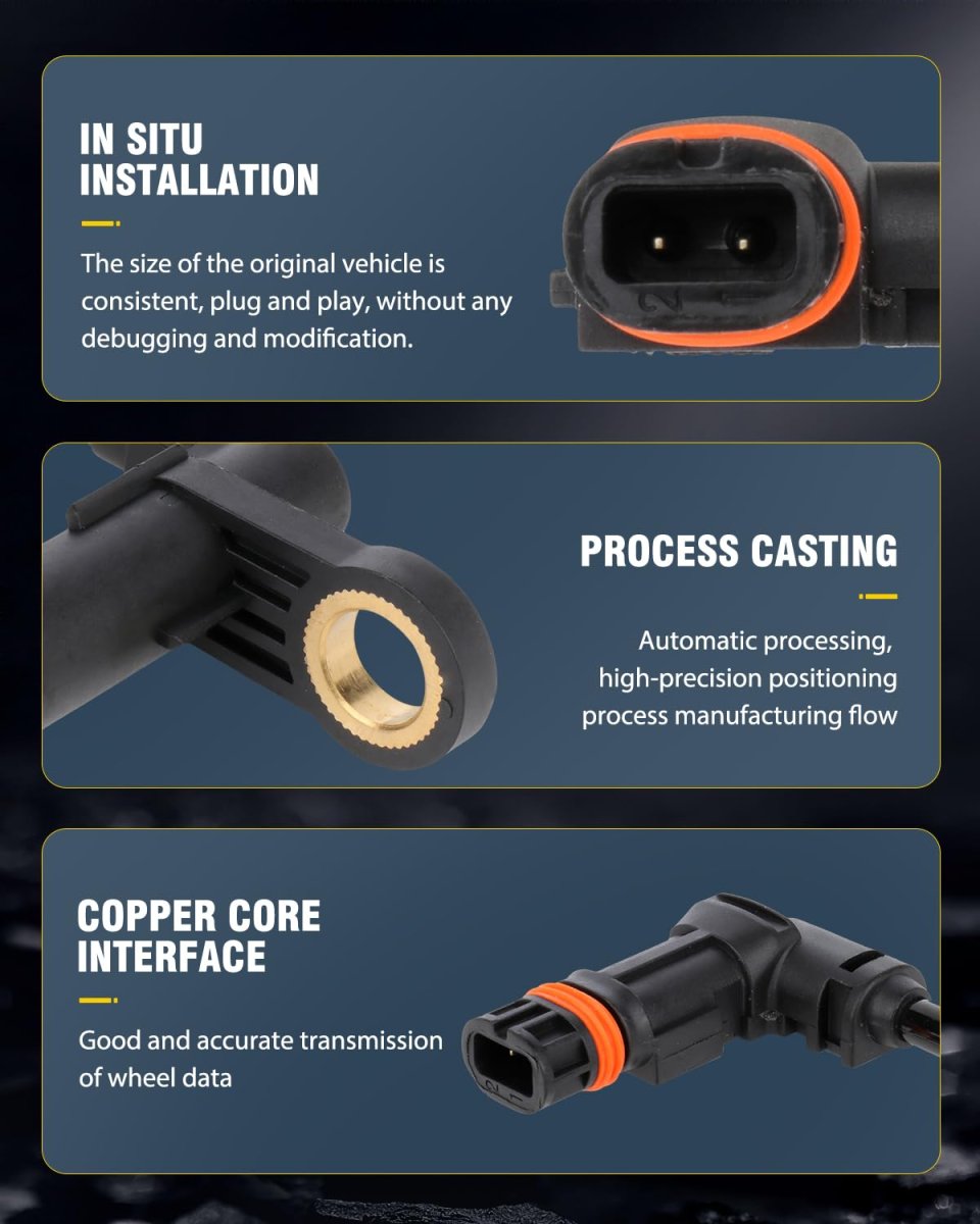 FITS - For Mercedes-Benz CL500 2000-2006, CL55 AMG 2001-2006, CL600 2001-2002, S350 2006, S430 2000-2006, S500 2000-2006, S55 AMG 2001-2006, S600 2001-2002 - Front Left/Right, Driver/Passenger Side. REFERENCE NUMBER - 2205400117, 2205400217, ALS406, 5S11033 - Direct replacement for OEM parts. HIGH STABILITY AND RELIABILITY - Precision manufactured ABS wheel speed sensors meet or exceed OE standards for stability and reliability in all driving conditions. FEATURE - Maintains directional stability during braking, prevents wheel lock-up, and preserves steering control even in emergency stops. COMPATIBILITY NOTE - Verify your vehicle model and original part number before purchase to ensure proper fitment.Other fine products