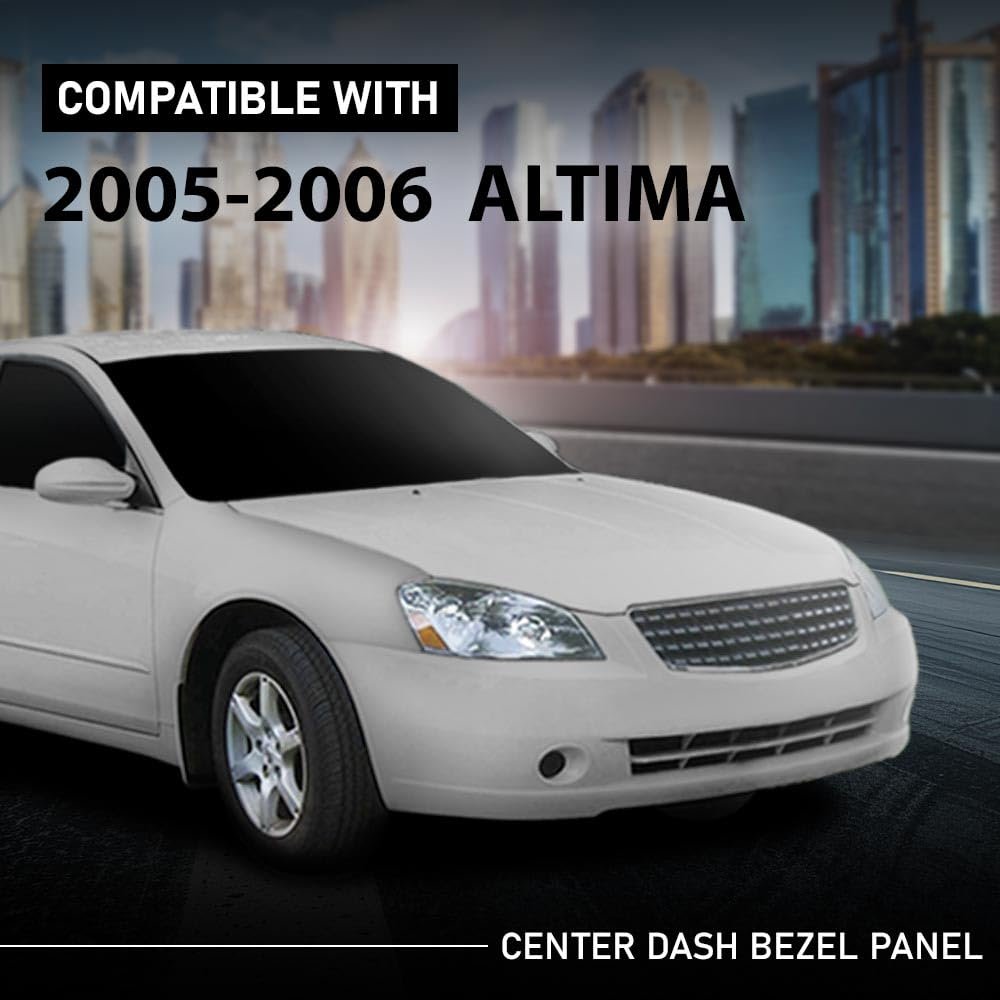 Compatibility: Compatible with Nissan Altima 2005-2006. : Center dash radio bezel is made of high-quality ABS material, which is durable and wear-resistant. UV coating can prevent fading,has long-lasting performance.. Good Protection: Dashboard radio bezel panel can protects the dashboard or instrument cluster in all aspects, effectively waterproof and dustproof, prevents scratches, wear, and other damage caused by daily use or external factors.. Precision Design: Dash cover trim has undergone precise measurement and seamlessly integrated design,that effectively reducing the gap with the dashboard structure,and enhances the overall appearance of the vehicle interior, making it look clean and finished.. Easy to Maintain: Manufactured according to factory specifications, dash panel can be easily cleaned or replaced, and can quickly maintain and service the interior of the vehicle..Other fine products