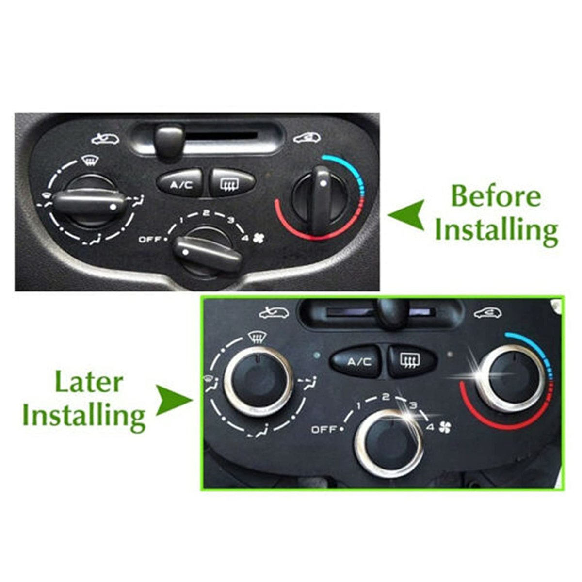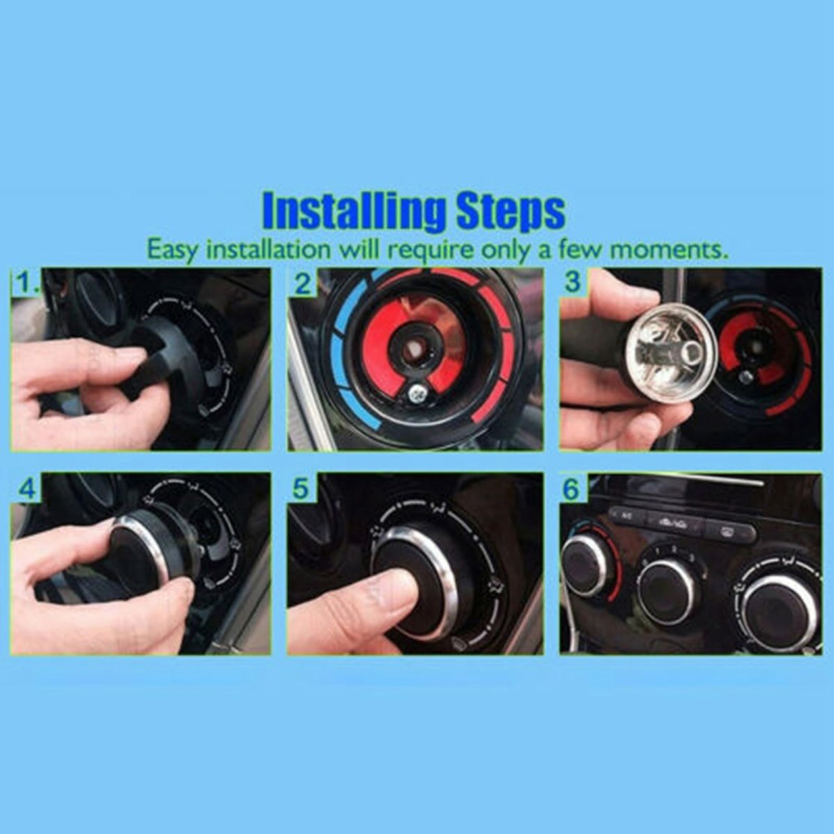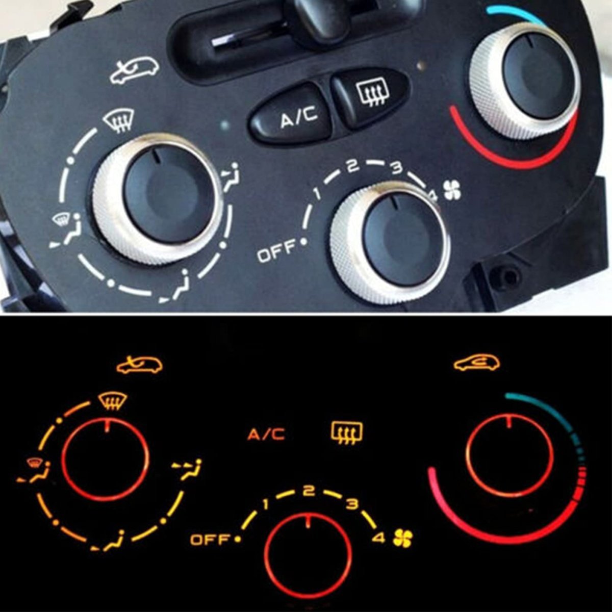 Applicable ---- Auto air-conditioning control switch knobs, replace 206/206+/ 207 to meet your needs. Material ---- AC Switch KNOB is made of high-quality aluminum alloy and ABS material. It is and can be used for a long time. Size: about 4cm x 4cm/1.57in x 1.57in. Unique design ---- AC Climate Control KNOB uses a matte switch handle to ensure that your fingers will not slide, non-sliding design, and feel good with its emotional enjoyment. Exquisite appearance ---- AC Switch KNOB adopts workmanship, perfectly decorate your car, internal switch knobs make the light shine from the instrument panel, and the darkness looks more beautiful in the darkness. Easy to install ---- A/C Air Conditioning Control Switch is easy to install, no complicated tools, convenient use.Other fine products