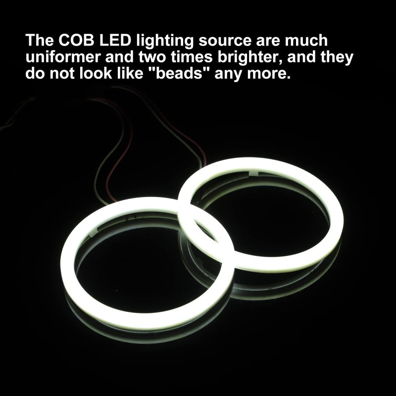 1 Pair Universal Plastic Car COB LED Angel Eyes Ring Fog Light Headlight Lamps. Good Replacement: To replace your LED angel eyes ring light if its broken, cracked, clogged beyond repair, or wont stay aimed correctly. Widely Application: Daytime running light, high beam, turn light, dipped beam headlight, width lamp, fog lamp, loudspeaker decorative light, etc.. Easy Installation: Plug and play style, just need to connect the wires with the power..Other fine products