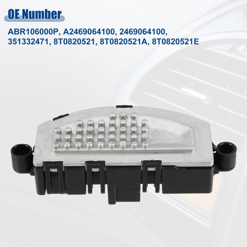 Fit for: for Audi A4 Quattro 2013 L4 2.0L, for Audi A4 Quattro 2014 L4 2.0L not fit Diesel, for Audi A4 Quattro 2015 L4 2.0L, for Audi A5 Quattro 2012-2017 L4 2.0L, for Audi allroad 2013-2016 L4 2.0L, for Audi Q5 2013-2017 L4 2.0L, for Audi Q5 2013 V6 3.0L Supercharged, for Audi Q5 2014-2016 V6 3.0L, for Audi Q5 2017 V6 3.0L Supercharged, for Audi S4 2013-2015 V6 3.0L, for Audi S5 2013-2017 V6 3.0L, for Audi SQ5 2014-2017 V6 3.0L, for Mercedes-Benz B Electric Drive 2014-2015 BATTERY EV (EV/BEV).. OE Number: ABR106000P, A2469064100, 2469064100, 351332471, 8T0820521, 8T0820521A, 8T0820521E. To replace your HVAC blower motor resistor heater if its broken, cracked, clogged beyond repair, or wont stay aimed correctly.. Easy To Install: The blower motor resistor is easy to install and use. In order to avoid errors, it is recommended to consult a professional about installation knowledge.. Package Includes: 1 Pcs Fan Blower Motor Resistor..Other fine products