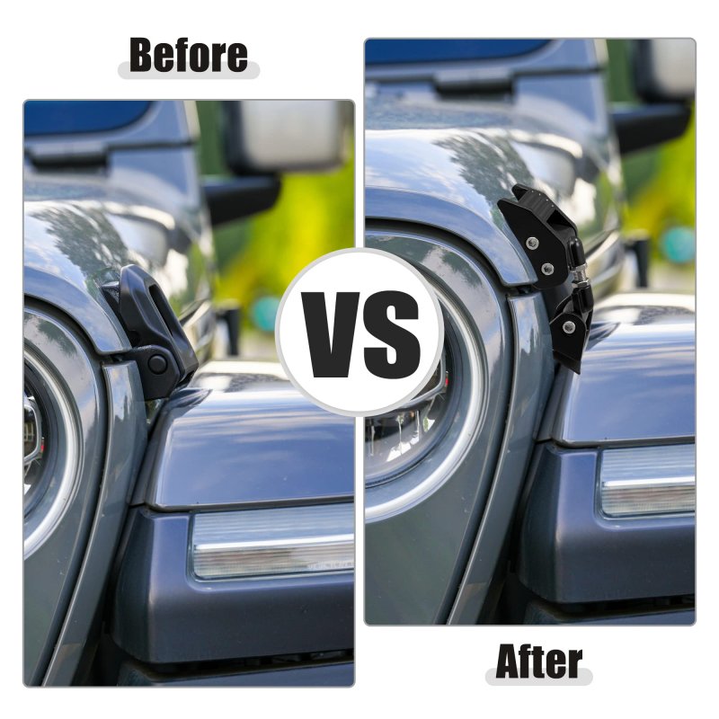 Fit for: for Jeep Wrangler JK 2 Door & Unlimited 4 Door 2007-2018. Features: The hood lock with lock can effectively reduce the hood flutter and increase the protection of the vehicle; without the key, no one can open the hood and improving the safety of the vehicle.. Good Replacement: replace your hood latch if it's broken, or cracked. Made of good quality plastic and metal, which is portable, and durable.. Easy Installation: No drilling or cutting is required. Simply remove the original hood latch and install the new one in the same way.. Package Includes: 2 Pcs Hood Latch Lock, 2 Pcs Buckle, 4 Pcs Gasket, 1 Pcs Wrench, 1 Pcs Installation Notes.Other fine products
