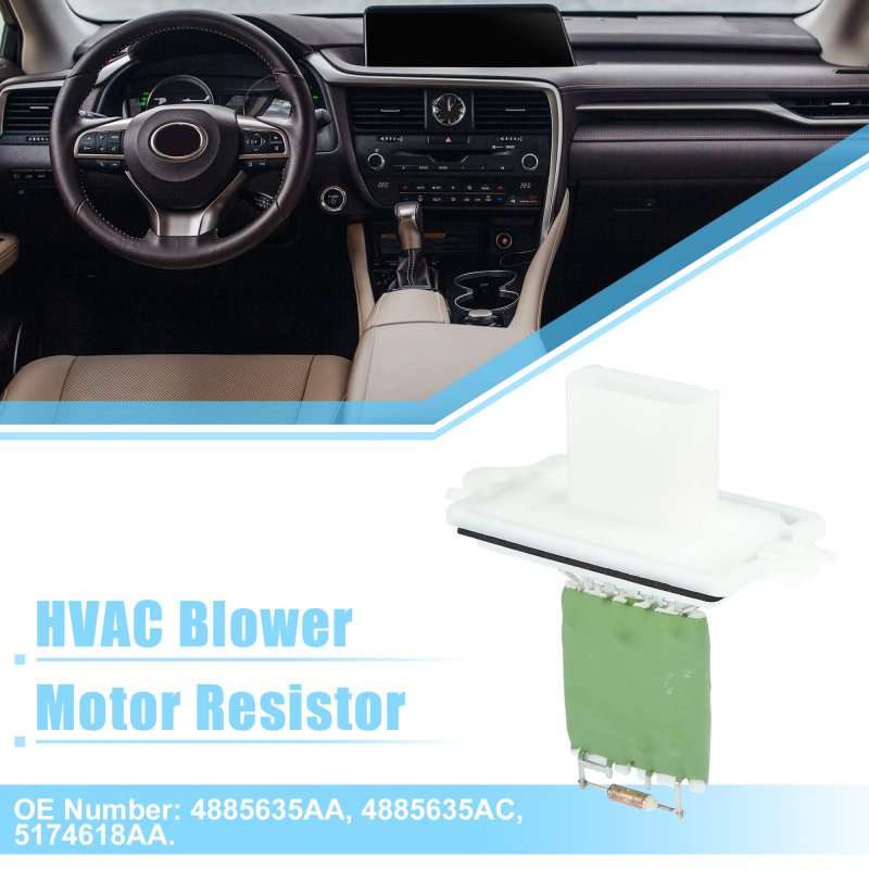 Fit for Chrysler Aspen 2007-2009, for Dodge Dakota 2002-2004, for Dodge Durango 2003-2009.. OE Number:4885635AA, 4885635AC, 5174618AA.. Replacement - To replace your HVAC blower motor resistor If you can no longer adjust the air flow speed with your AC control or your AC system is no longer blowing you need a new blower motor resistor.. Easy Installation - The blower motor resistor is easy to install and use. In order to avoid errors, it is recommended to consult a professional about installation knowledge.. Package Includes: 1 Pcs Blower Motor Resistor..