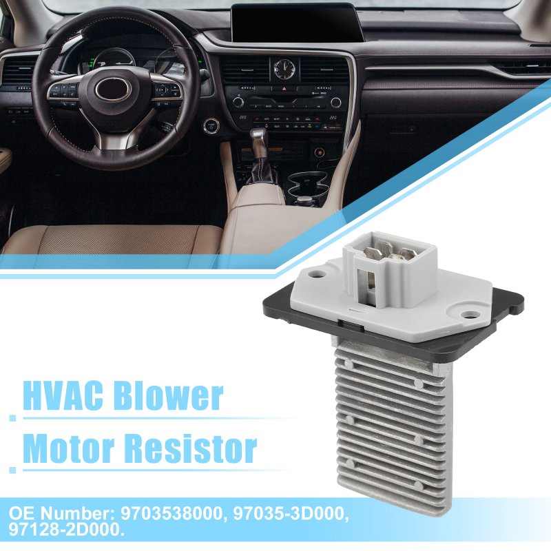Fit for Kia Optima 2001-2006, for Kia Soul 2010-2013, for Hyundai Accent 1995-2005, for Hyundai Elantra 1996-2000, for Hyundai Sonata 1994-2005, for Hyundai Tiburon 1997-2006, for Hyundai XG300 2001, for Hyundai XG350 2002-2005.. OE Number:9703538000, 97035-3D000, 97128-2D000.. Replacement - To replace your HVAC blower motor resistor If you can no longer adjust the air flow speed with your AC control or your AC system is no longer blowing you need a new blower motor resistor.. Easy Installation - The blower motor resistor is easy to install and use. In order to avoid errors, it is recommended to consult a professional about installation knowledge.. Package Includes: 1 Pcs Blower Motor Resistor..