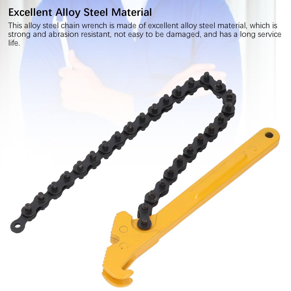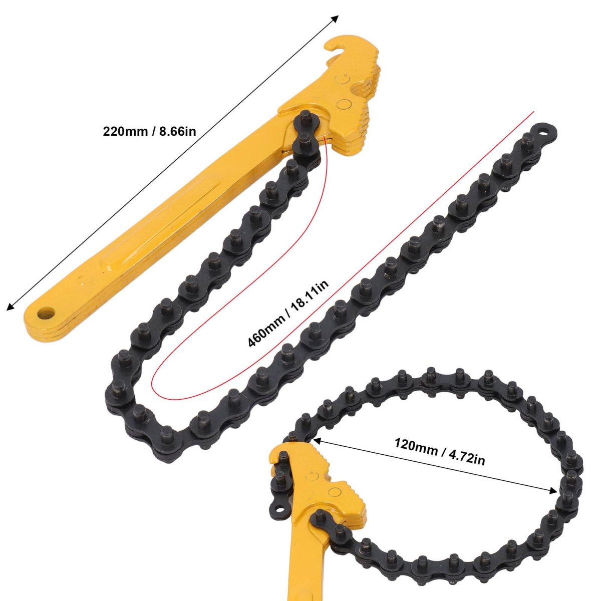 [Long-lasting Construction] The alloy steel material ensures strength and abrasion , making it suitable for tough automotive and industrial applications.. [Adjustable Design] Featuring a 12-inch bright orange handle for easy visibility in any toolbox, providing added convenience and efficiency during use.. [Wide Application] This oil fuel filter chain wrench can be used for automotive repair, furniture repair, industrial maintenance, and more, offering versatility in various projects.. [Long-lasting Tool] Designed for durability and efficiency, this chain wrench is built to handle the toughest jobs and has a long service life, making it a choice.. [Versatile Chain Wrench] With a 460mm long chain design, this tool fits up to 120mm pipes and filters for easy adjustments, ideal for mechanics and plumbers..Other fine products