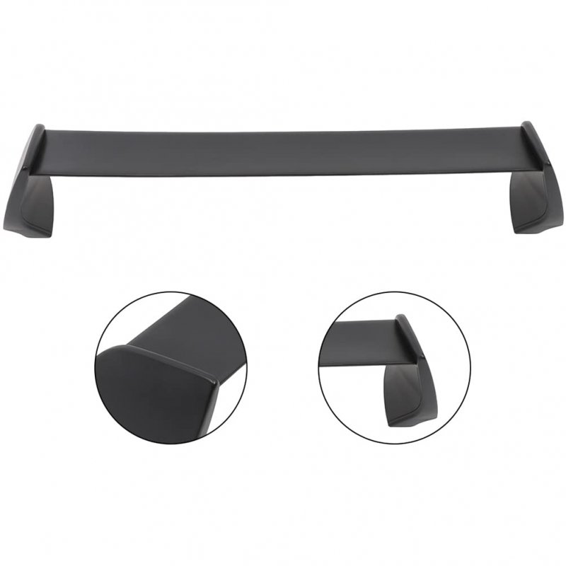 Aerodynamic Design: This rear spoilers will add a sporty and aggressive look to your car while enhancing aerodynamics by lowering overall drag. These rear spoilers come with adjustable brackets to allow full customization to the total down-force on the car dramatically improving vehicle stability in addition to grip and traction.. Superior Performance: The rear trunk spoiler can be extended far enough to pick up some clean air and create limited drag to make the driver feel more comfortable at high speeds.. Excellent Quality: Made of ABS material. Tough and durable enough for long-lasting performance. Unpainted Raw Material Black with classic design, in line with popular aesthetic. Coming with super lightweight & great appearance & stylish shape.. Easy to Install: Clean the installation location, it can be mounted on screw or stick with double side adhesive tape. Product may require drilling holes and apply bolts to attach to your bumper.The spoiler wing is designed according to the original vehicle, and it's perfectly fits its body..Other fine products