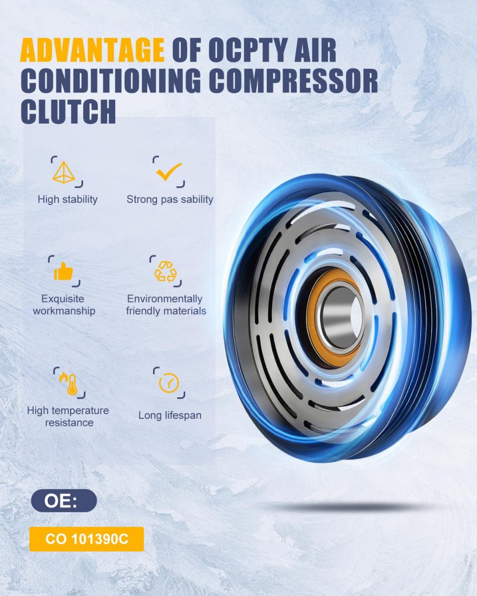 1 High-quality materials: AC compressor clutch uses alloy materials to improve the rigidity of the product and extend its service life. When the speed is high, the output power is low, which effectively reduces the engine load. 2 Original Installation: AC compressor with clutch strictly meets with the original factory size, wide applicability, easy to install. 3 Air Conditioning Compressor Clutch Part Number: CO 101390C,154784, 667877, 58139, 6511451,2010984AM, 2010984R, CL1206, 57154. 4 AC Compressors Vehicle: 1994-1995 Fit for Hyundai Elantra 1.6L,1994-1995 Fit for Hyundai Elantra 1.8L,1992-1998 Fit for Hyundai Sonata 2.0L,1990-1998 Fit for Hyundai Sonata 3.0L,1993-1998 Fit for Mercury Villager 3.0L,1999-2002 Fit for Mercury Villager 3.3L,1993-1998 Fit for Nissan Quest 3.0L,1999-2002 Fit for Nissan Quest 3.3L, (check the details following the description). 5 orced Cooling: The compressor is the heart of the car's refrigeration system, regulating the temperature inside the car. A high-quality compressor can solve the swelter in the car, allow you to enjoy your trip.Other fine products