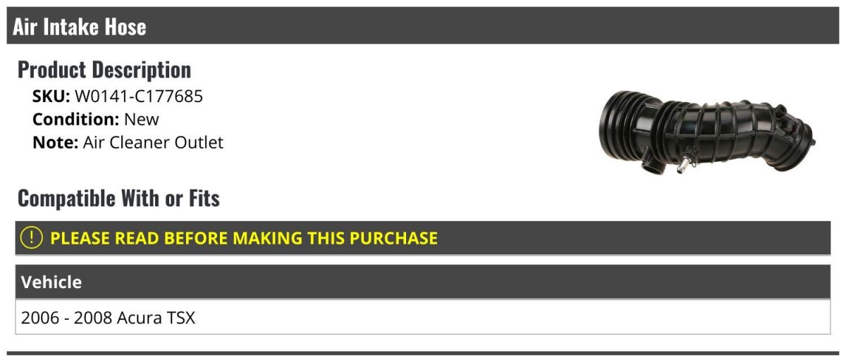 - Air Intake Hose Air Cleaner Outlet For 2006-2008 Acura Tsx