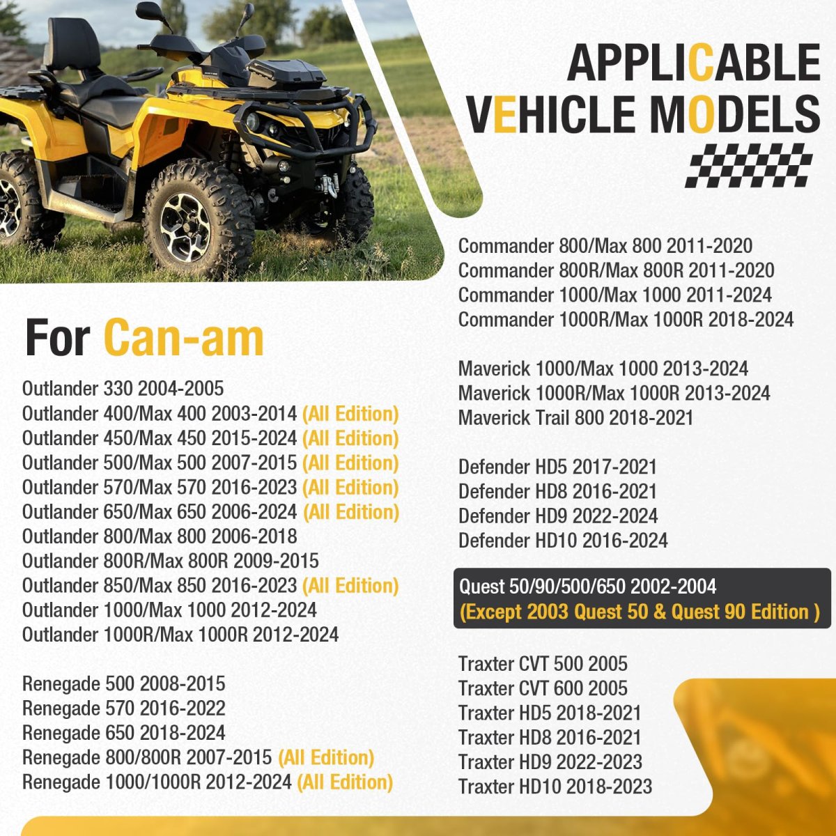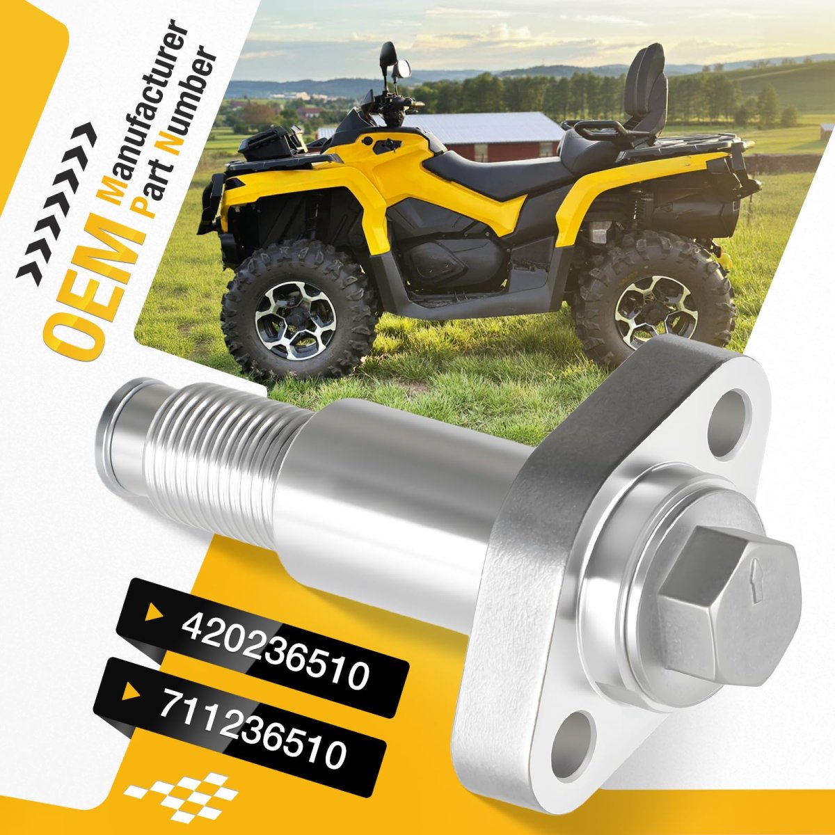 Compatible Models:Aluminum timing chain tensioner & o-ring for Can-am Outlander 330,400,450,500,570,650,800,850,1000 models. Compatible Models:Aluminum timing chain tensioner & o-ring for Can-am Renegade500,570,600,800,1000,for Commander Maverick 1000,800,for Defender HD5,HD8 ,HD9,HD10,for Quest 50/90/500/650,Traxter CVT 500,600, HD5,HD8,HD9,HD10. Compatible Models:Aluminum timing chain tensioner & o-ring for Ski-Doo Skandic V-800 SWT/Tundra 2007-2012,Legend V-1000 2003-2005,Legend Trail V-800 2007,Legend Touring V-800 2007-2009,Grand Touring V-1000 Sport 2003,Expedition 4-TEC 2004. Compatible Models:Aluminum timing chain tensioner & o-ring for Ski-Doo Expedition V-1300 2008,Expedition TUV V-1000 2005-2006,Expedition TUV V-800 2007-2008,Expedition 800 TUV Yeti II 2009,Expedition Sport V-800 2007-2008. Manufacturer Part: 420236510 , 711236510. Package: pack of aluminum Timing Chain Tensioner x1.Other fine products