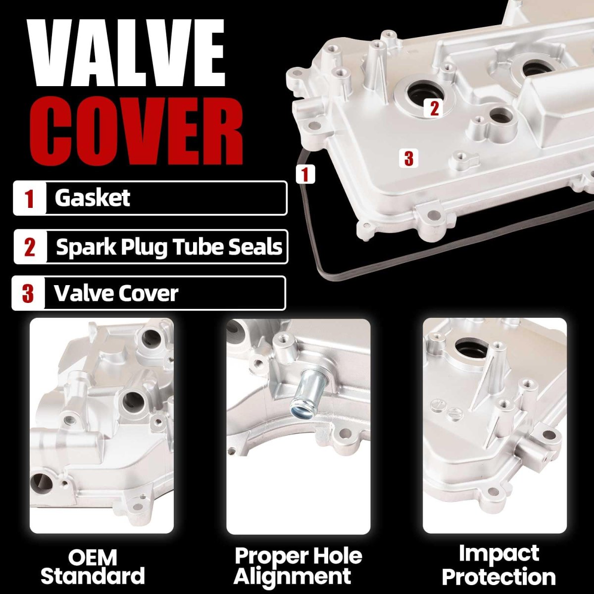 PACKAGE INCLUDES: Engine Valve Cover Assembly Includes NEW Valve Cover Assembly with Gasket, Spark Plug Tube Seals. POSITION: Right Side. UPGRADE ALUMINUM: MITZONE valve cover is made of aluminum to without cracking and leaking to protect your car engine and enhance driving safety. It maintains its shape under high temperature without deformation. ADVANTAGES: High performance pre-Installed valve cover with Gasket, Spark Plug Tube Seals to make your car repair more easier and designed to match all specifications of the original part for convenient. OE quality at lower cost than getting replacement at dealer.Other fine products