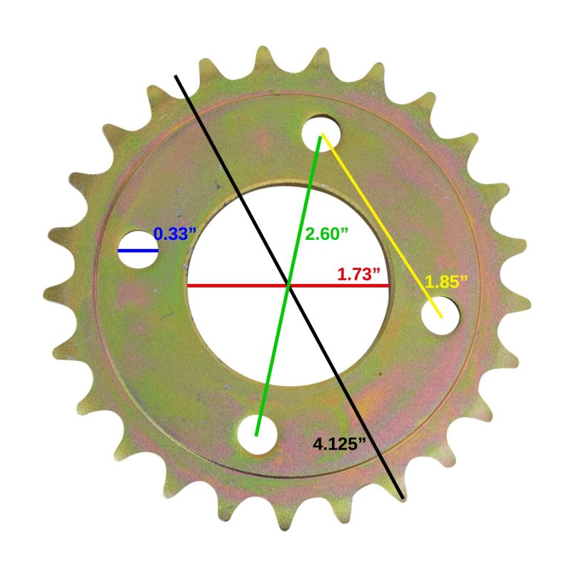 For #420 chain.. 25 teeth.. 4.16" disc with a 1.73" center hole.. For Coleman KT196 and CK196 196cc 6.5 Hp go-karts..