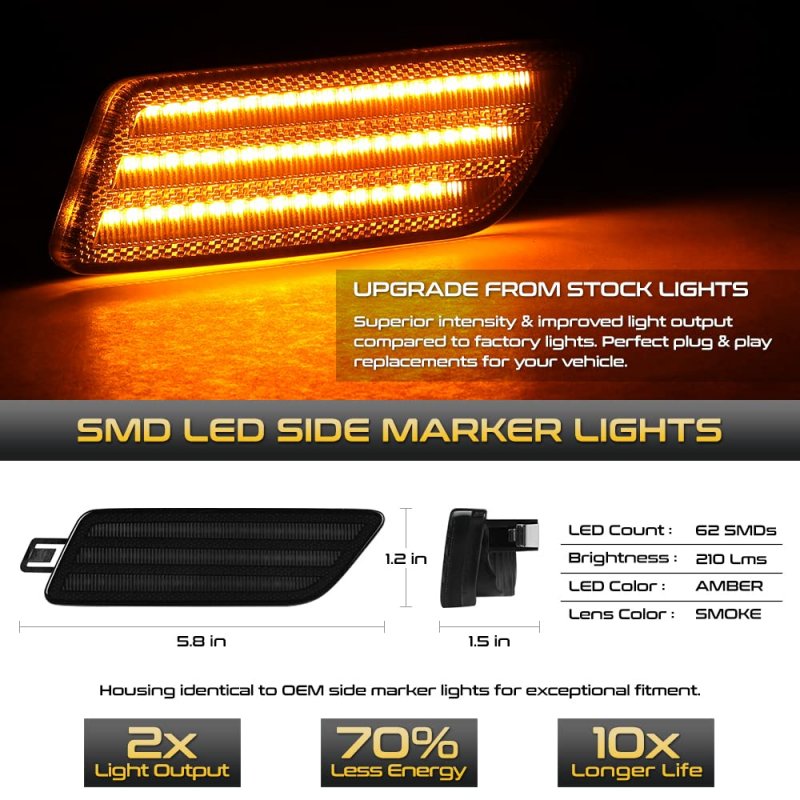 [Package Content] - Include Driver and Passenger Side Complete Set (2-Pieces) Pair In Box; You only need to add 1 quantity to cart. [Premium LED Technology] - Designed with Powerful LEDs to be Visually Striking and Enhance Visibility. [Fully Plug & Play] - No Re-Wiring or Modification to Factory Harness Needed. [Cool Smoked Lens] - Intended For Car Show or Off-Road Use Only.Other fine products