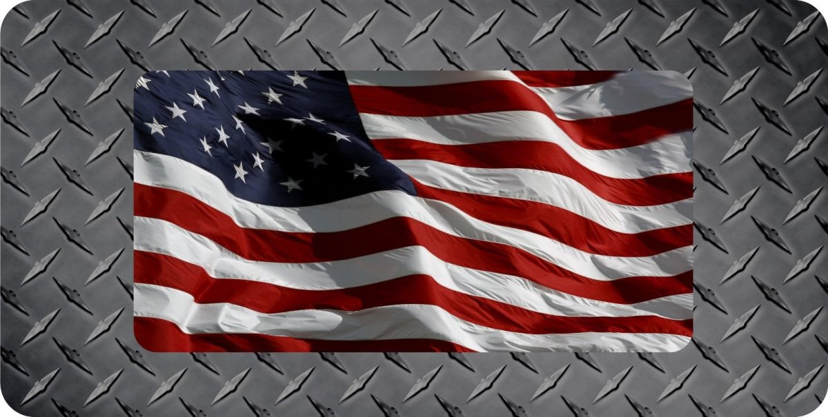 - American Flag On Diamond Plate Flat Photo License