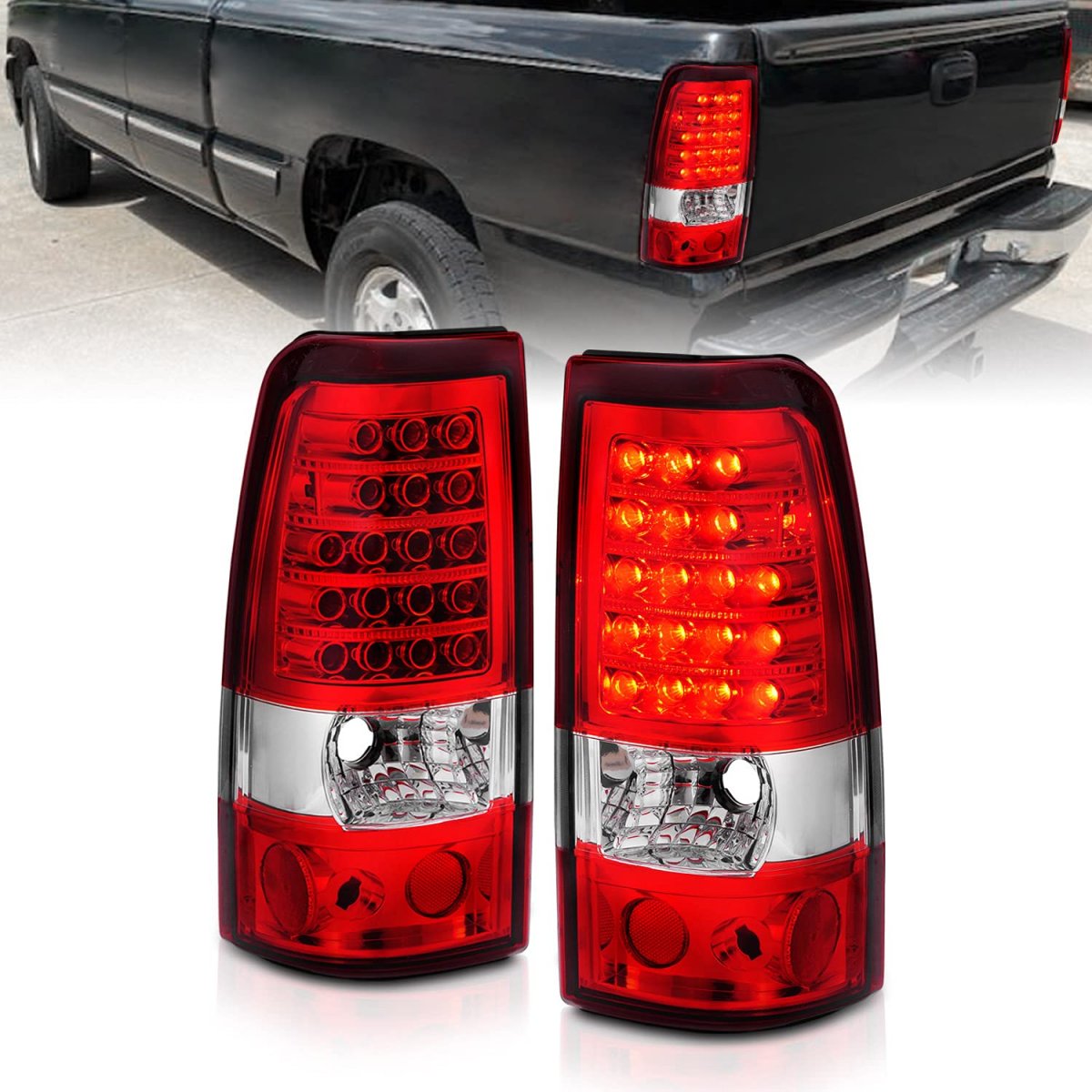 - Amerilite Red Clear Led Replacement Brake Tail Lights Set For 03-06 Chevy Silverado Passenger And Driver Side