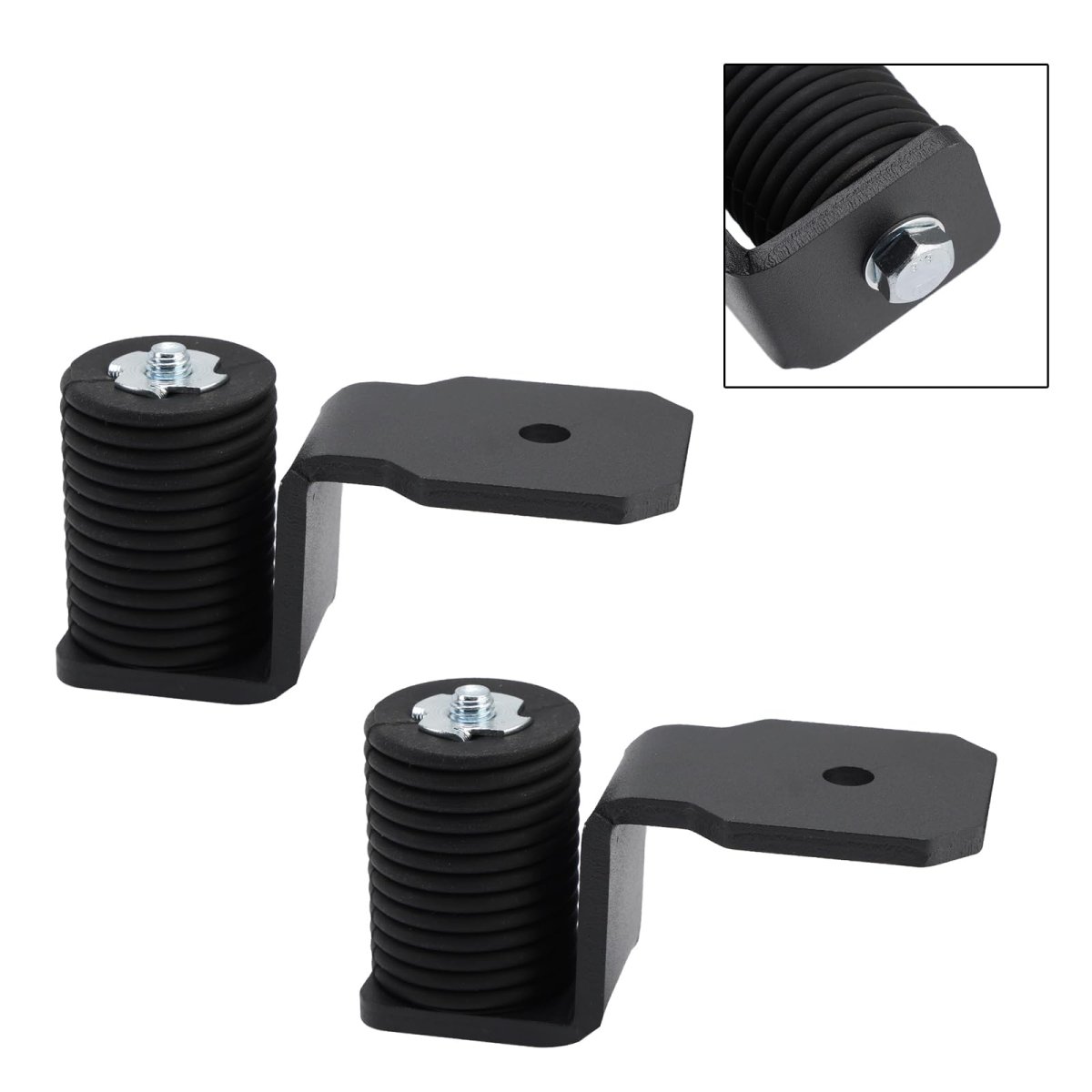 Featuring a sleek matte black powder-coated finish, providing excellent protection against rust, chips, and harsh weather conditions.. Made from 3/16-inch laser-cut plate steel, these brackets are built to handle rough terrain, hard impacts, and endless off-road excursions, ensuring long-lasting durability.. For Polaris Ranger 1000/900 XP, including various editions like XP 1000 Waterfowl, Trail Boss, Texas Edition, and more (see full fitment list). Fits vehicles with 37mm cargo bed holes.. The mounting kit requires minor drilling, giving you the flexibility to set up your whip lights in multiple positions exactly where you want them for optimal visibility.. Package Includes 2 x Rubber Anchors, 2 x Mounting Brackets, 1 Set of Mounting Hardware..Other fine products