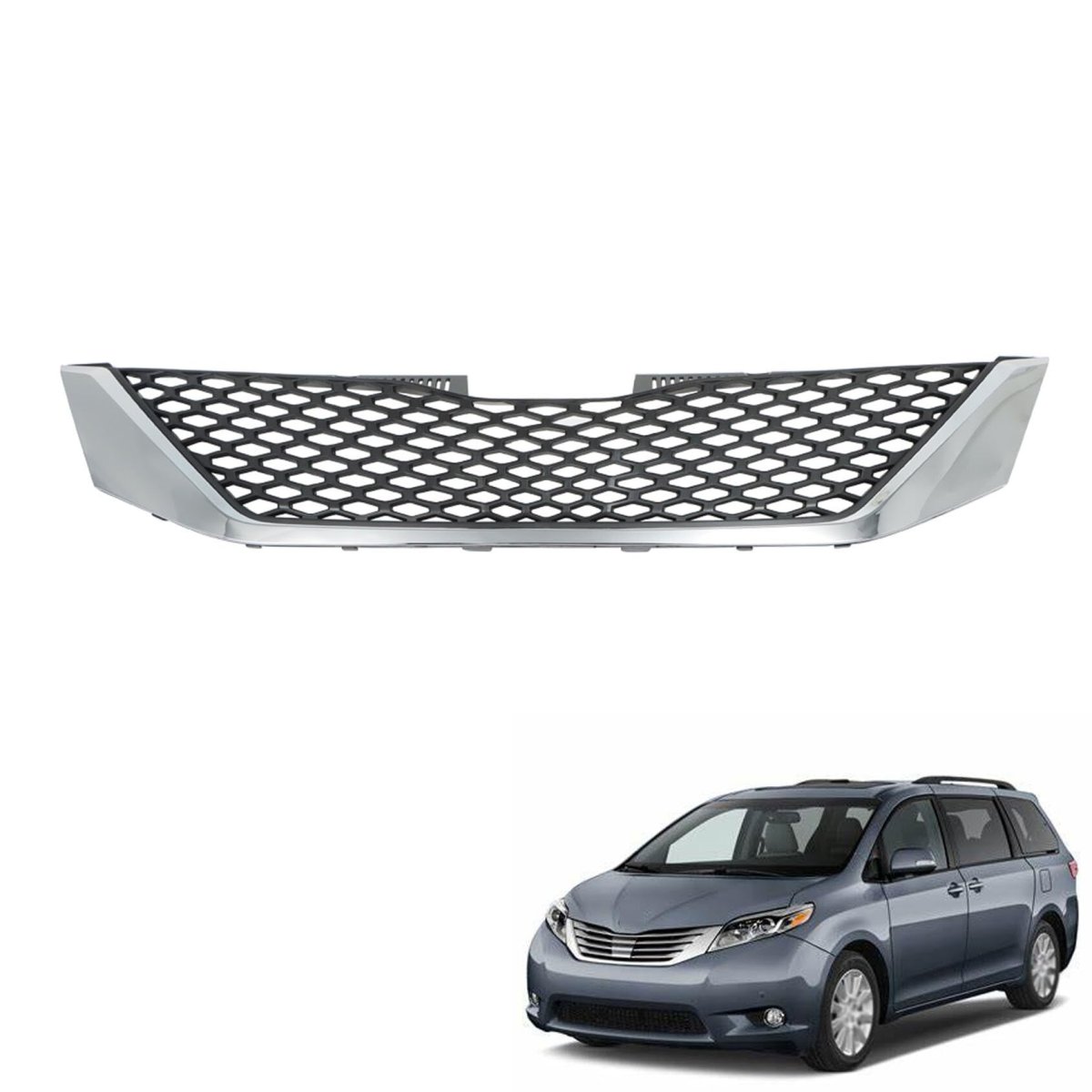 Fitments - Front bumper radiator grille replacement for 2011 2012 2013 2014 2015 2016 2017 Sienna. Durability Material - The front bumper grille made by plastic, structure strong and has long service life, chrome design plating can better decorate your vehicle. Powerful Function - Providing better airflow to the radiator helps with the cooling process and improves vehicle performance. Appearance - Adopting a mesh design, the black design with chrome plating can better decorate your vehicle. Professional Installation - Easy installation. Installation instructions are not included, professional installation is always recommended.Other fine products