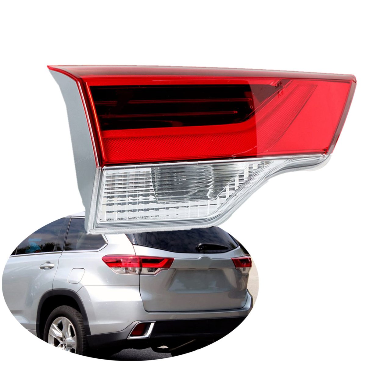 This inner driver side tail light replacement for Highlander 2017-2019 81590-0E120, TO2802139. To endure rough road conditions over a long time, water re-sistant and dust resistant, for toughness, impact resistance, and heat resistance. Created to be a perfect replacement for your factory-installed tail light to save up your time and effort and brings a different appearance to vehicle thats great for show use or replacement. These bolt-on style tail lights are designed for quick and easy installation. Plug and Play. This tail light is 1pc driver (left) side tail light lens & housing (Not include bulbs). Check the part reference numbers to make sure they match the part you need.Other fine products