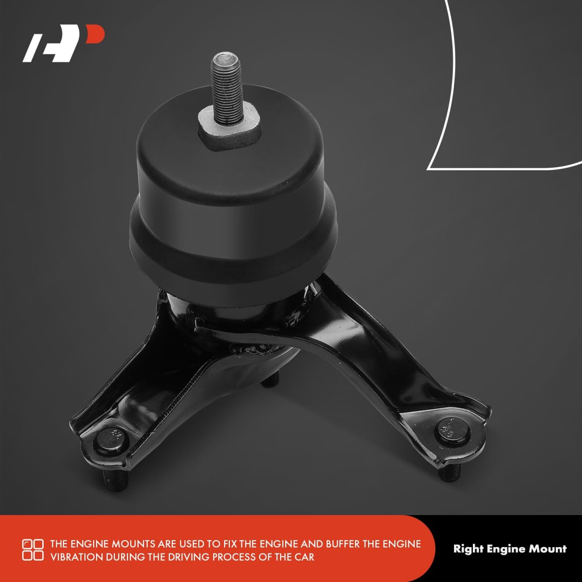 [Vehicle Fitment]: Compatible with Toyota Highlander 2014-2019 V6 3.5L --- Fuel: GAS. [Reference Number]: 9238, 10079, A62036HY, A42055, EM-9238, 123620P010, 123620P040, 123620P050, 123620P051, 1236231040, 1236231060, 123630P130, EM9238. [Package Included]: 1x Right Engine Mount; 1x Right Upper Engine Torque Strut Mount. [Product Description]: These engine mounts undergo harsh testing. Excellent materials are utilized along with rigorous quality control standards to meet or exceed OE specifications..Other fine products
