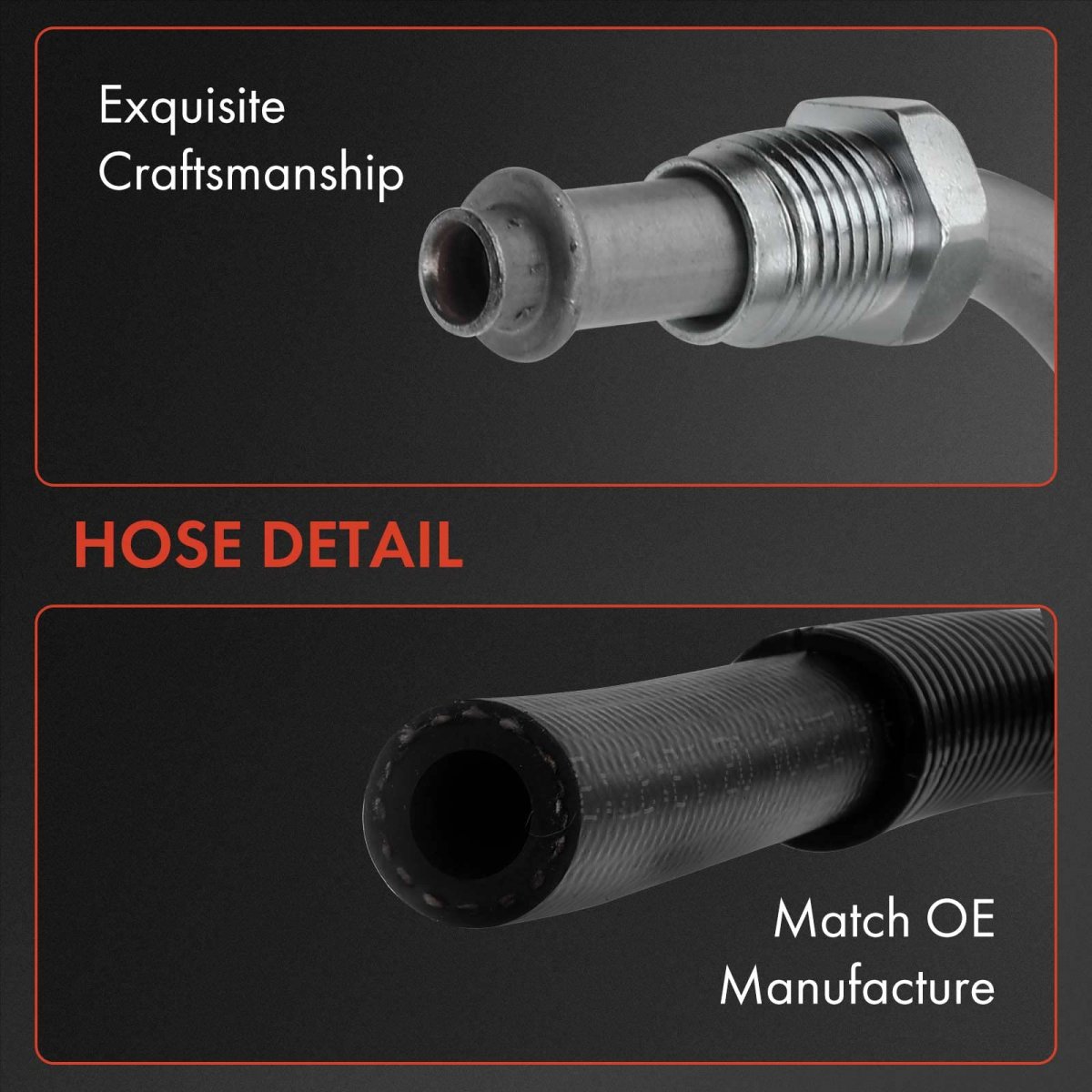 [Vehicle Fitment]: This power steering return hose is compatible with Buick Regal 2003-2004 V6 3.8L; compatible with Pontiac Grand Prix 1997-2003 V6 3.8L (From Gear)---1997-2003 Pontiac Grand Prix-without Variable Assist, with Cooler, Cut To Length 12". [Position]: From Gear. [The Performance]: Hose Type: Power Steering Return Line Hose Assembly; Working Pressure: Up to 250 psi; Working Temperature: -40 to 254; Material: Multi-Layer Rubber; Corrosion Resistant: Yes. [Reference Number]: The A-Premium power steering fluid hose's reference number: 3402287, 10334985. Before placing an order, verify that this power steering return line hose is compatible with your vehicle using the compatibility system..Other fine products