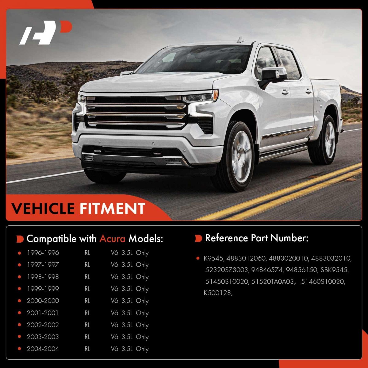 [Vehicle Fitment]: Compatible with Acura RL 1996-2004 . [Installation Position]: Front & Rear Suspension Left and Right Side. [Ideal Replacement]: This suspension steering kit is replacement for above model's suspension system, and may help you resolve those problems: clunking noise steering wander uneven tire wear excessive vibration poor handling !!!!. [Package Detail]: 2 x Rear Sway Bar Link, 2 x Front Upper Ball Joint. [Reference Part Number]: K9545, 4883012060, 4883020010, 4883032010, 52320SZ3003, 94846574, 94856150, SBK9545, K500128, 51450S10020, 51460S10020, 51520TA0A03.Other fine products