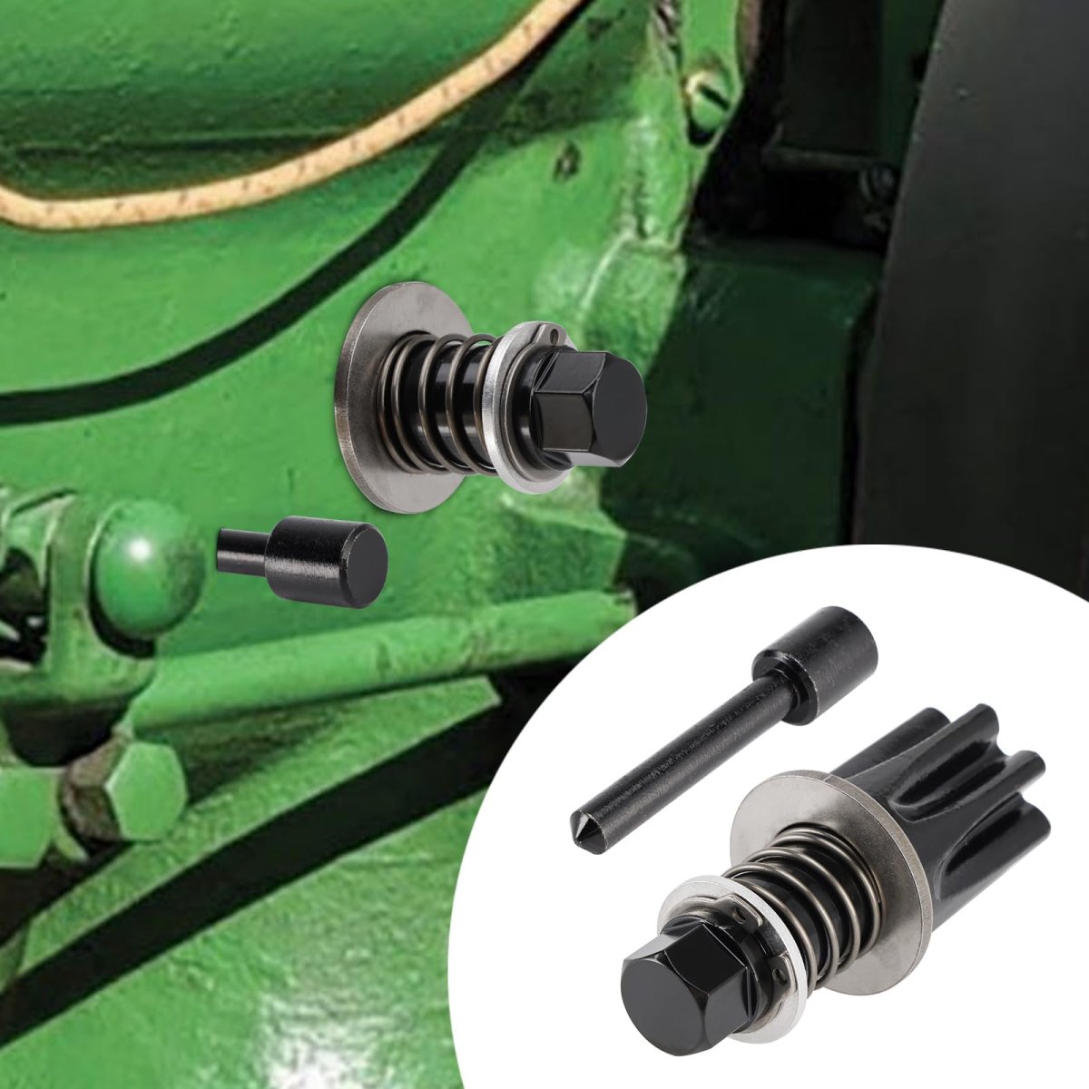 Heavy-Duty Alloy Steel Construction. Crafted from high-strength alloy steel with a durable black finish to withstand repeated use in demanding workshop environments. Designed to resist bending, wear, and corrosion for long-lasting service life.. Accurate Engine Positioning for Timing Checks. Locks the engine flywheel precisely at Top Dead Center (TDC), allowing for accurate high-pressure fuel pump timing verification and adjustmentessential for proper engine performance and fuel efficiency.. Professional-Grade Tool for Mechanics & Farmers. Ideal for professional diesel mechanics, farm equipment repair specialists, and John Deere owners who perform their own maintenance. Ensures the same level of precision as dealership tools at a fraction of the cost.. Direct Replacement & Easy to Use. Updated version of JDG820, includes the metal locking pin JDE81-4 for secure engine hold during service. Direct-fit design allows for quick setup without modification, saving time in the shop or field..Other fine products
