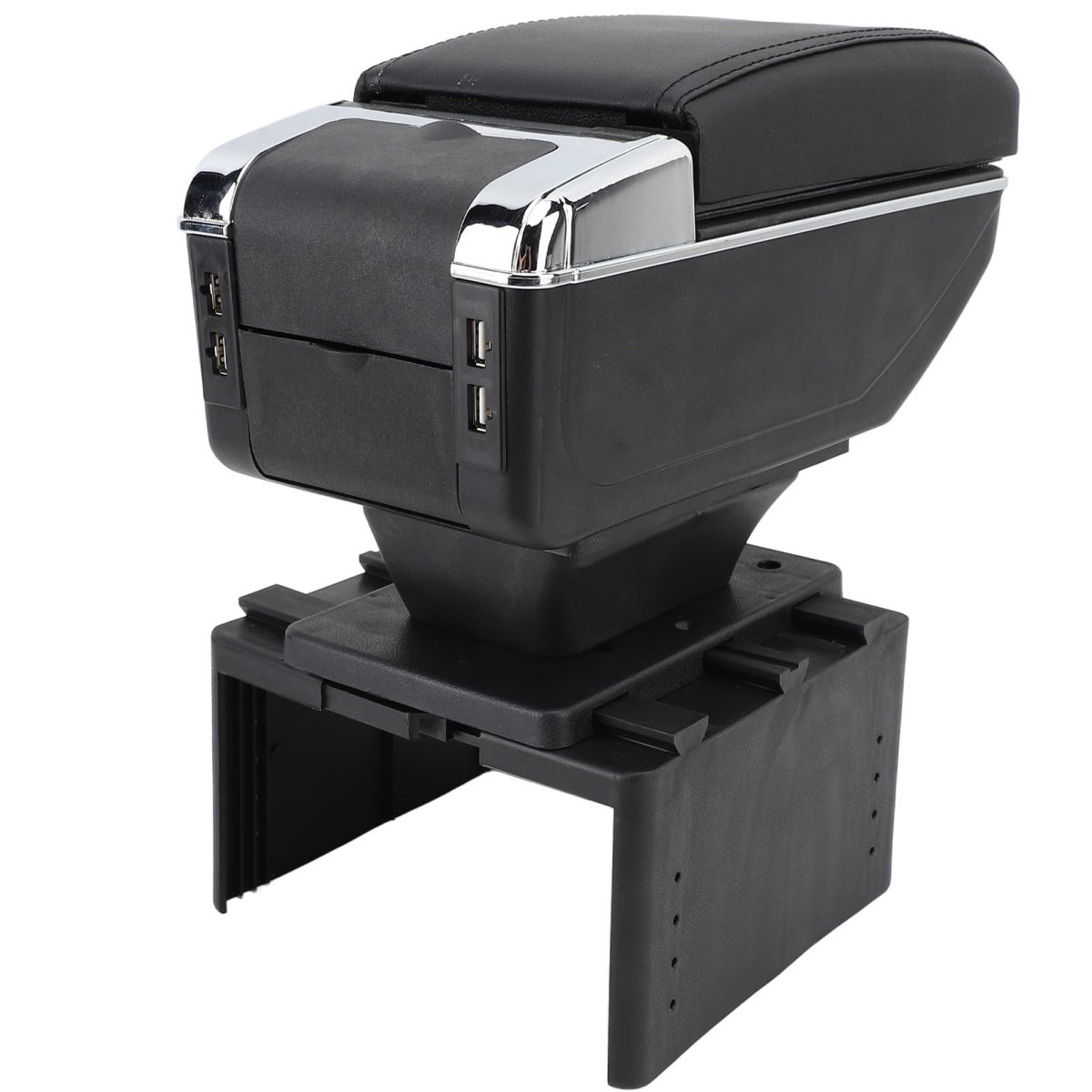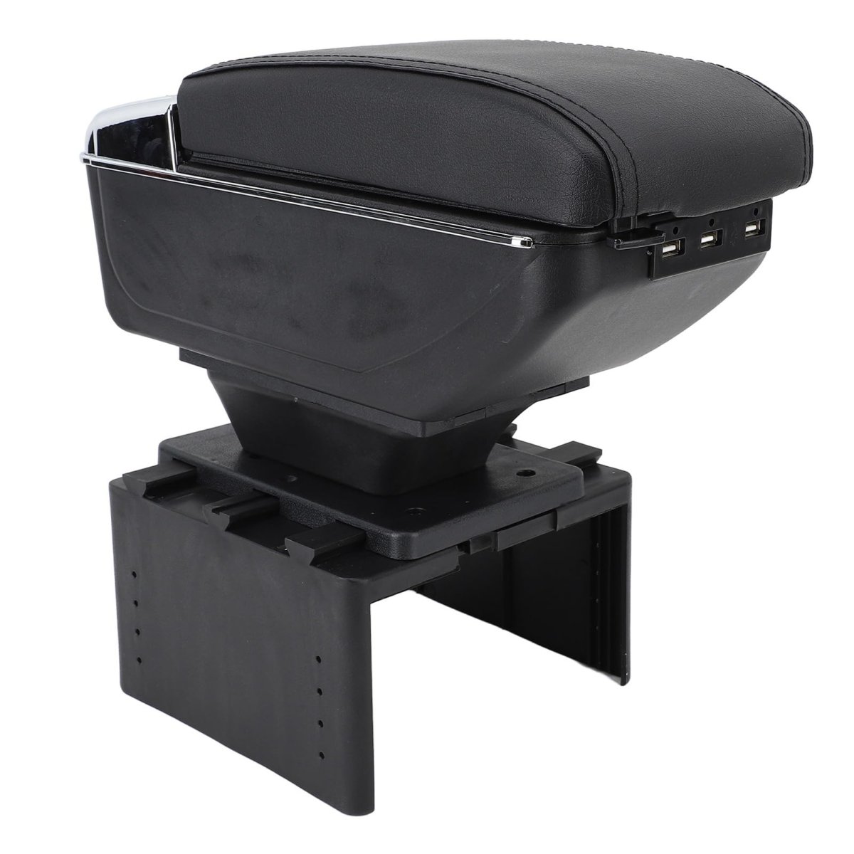 - Armrest Storage Box Microfiber Leather With Usb Ports Double Layer Organizer For Universal Cars Suvs Trucks Black Line