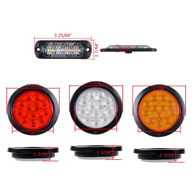 - Astra Depot 4pcs Amber White Ultra Slim 4-led Warning Emergency Strobe Lights And 2 Red 4 Round 12-led Truck Trailer Tail Light
