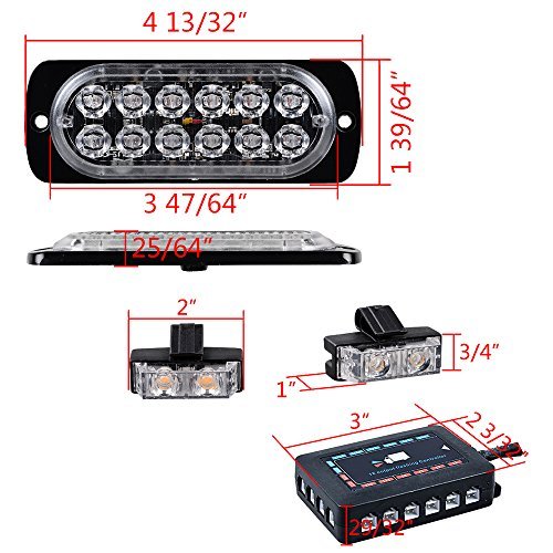 Universal fit for most vehicle with DC 12V Cars SUV vans and trucks. Ultra slim strobe light bar newest 3rd Generation High Power 12-LED super bright with surface mount. 16 different flashing patterns, Last pattern memory recall. High Intensity 2-LED Amber Strobe Lights Kit comes with 10 Different Modes of Strobing/ Fashing/ Traffic Advisor with just One Press on the button. High-quality adjustable brackets for mounting stability. With mode indicate design for better control the pattern. Anti-collision, anti-dust and splash-proof. Low power consumption, quick instant start-up time. No pollution, no noise, no electronic interference and more efficient. Strobe light / Beacon / Warning Light / mini Light Bar for transport and Security.Other fine products