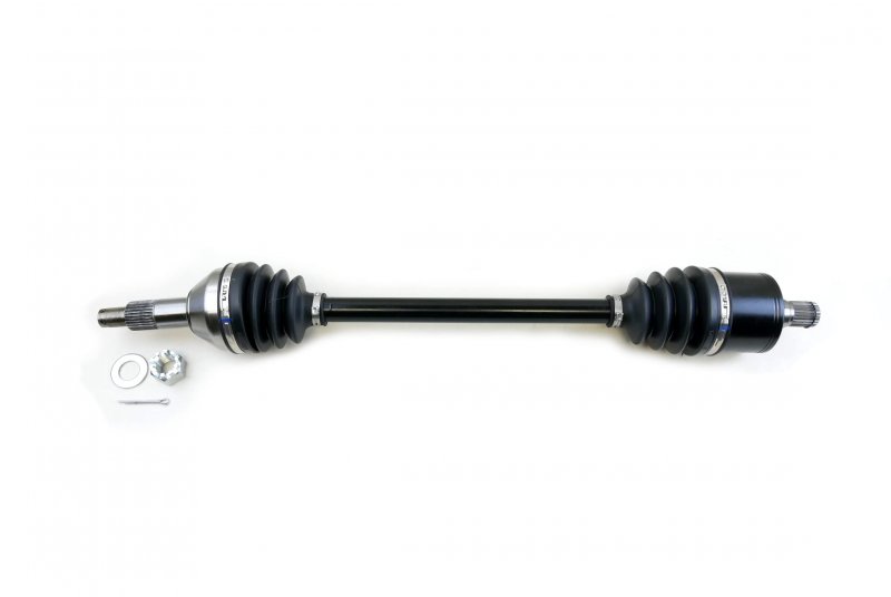 Fits REAR, LEFT on the following Can-Am XMR (purpose built mud racer) models: 2019-2023 Outlander XMR 650, 2019-2023 Outlander XMR 850, 2019-2023 Outlander XMR 1000, 2020-2021 Renegade XMR 570, 2020-2023 Renegade XMR 1000.. Features a stronger than OEM chromoly forged steel axle bar. Greased with a moly based grease to provide superior joint lubrication. Fitted with neoprene CV boots for added wear and puncture resistance.. Compressed Length: 574 mm, Inner Splines: 24, Outer Splines: 26.. Replaces OEM # 705503025, 705502712..Other fine products