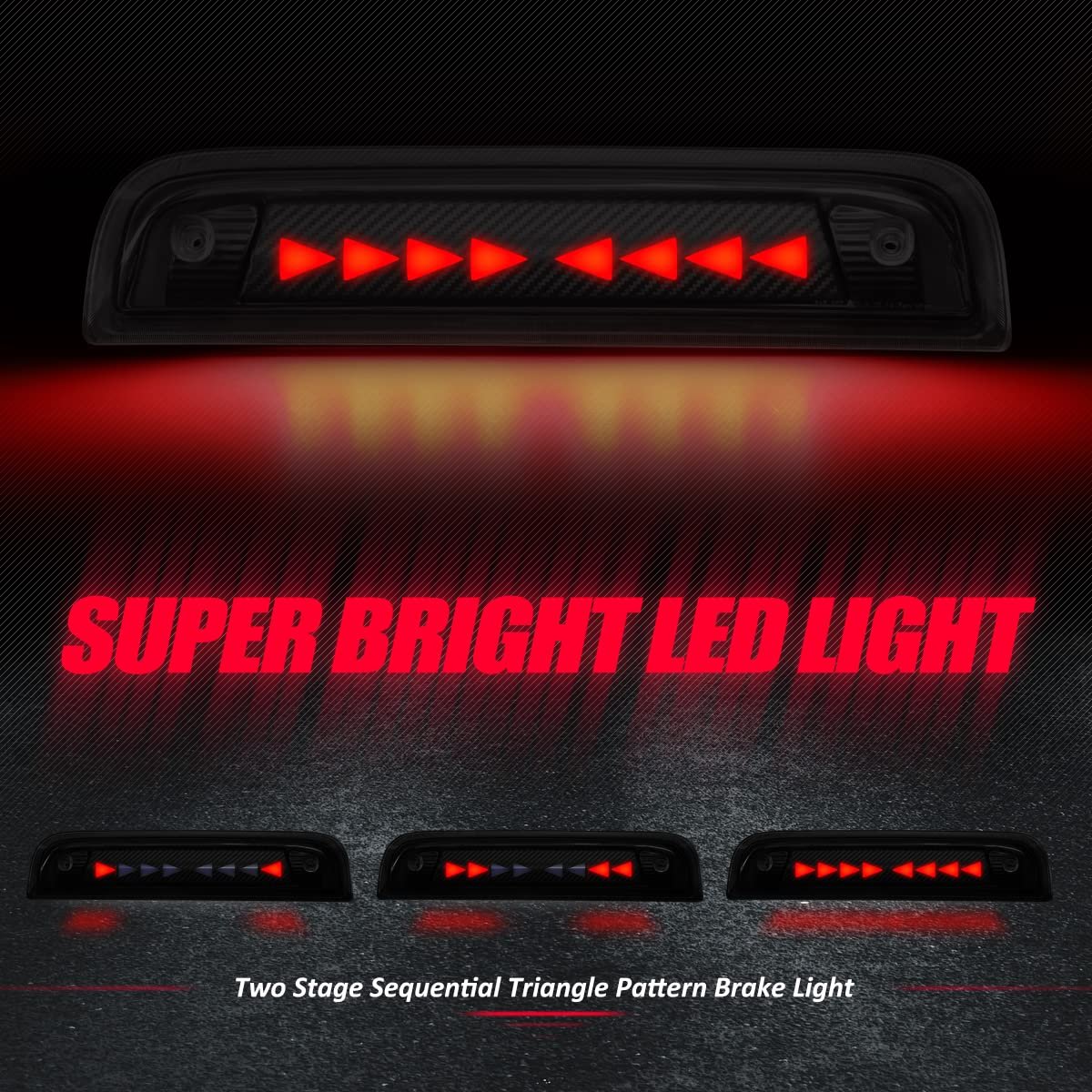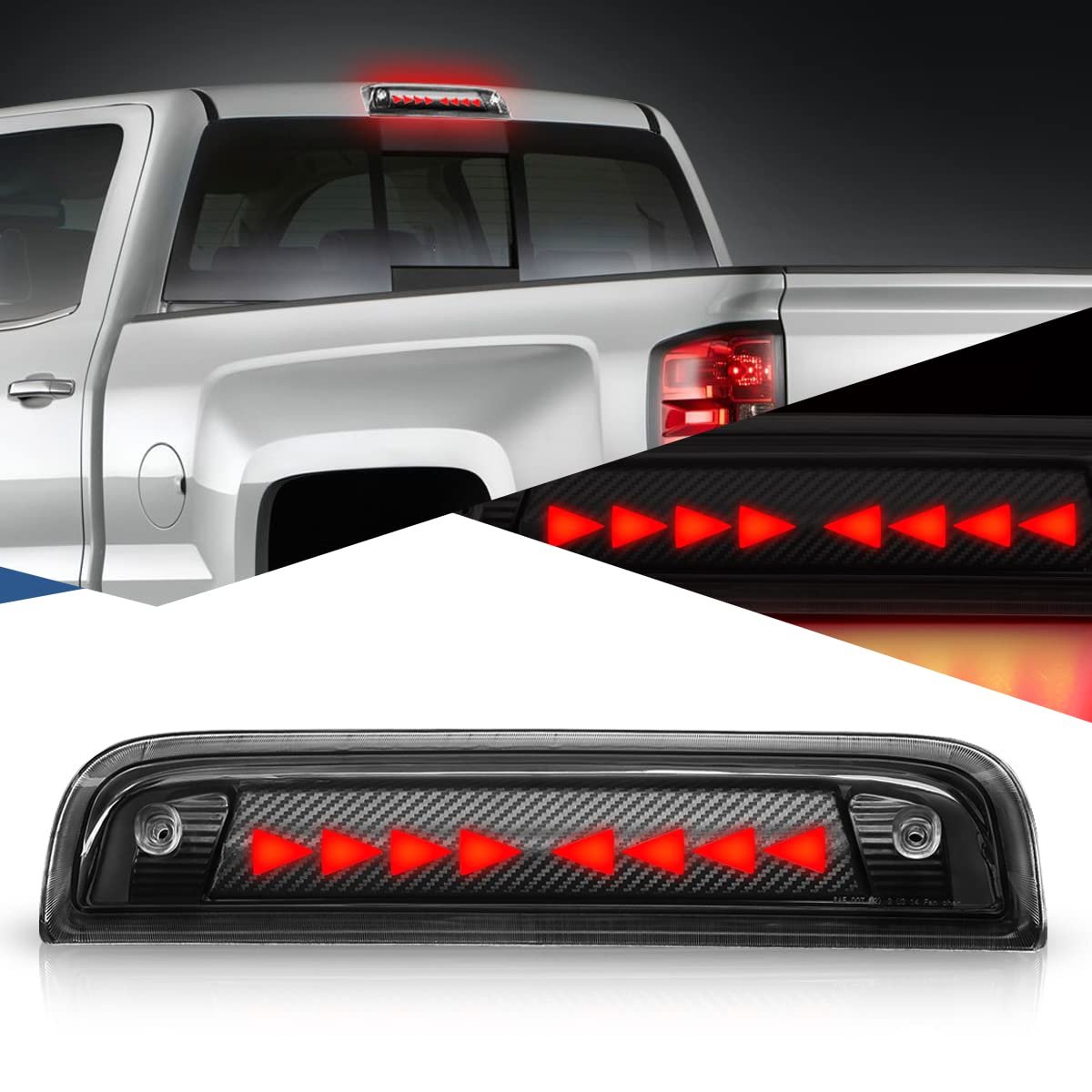 - Auto Dynasty Carbon Fiber Look Sequential Triangle Led 3rd Third Tail Brake Light Stop Lamp Compatible With Chevy Gmc Gmtk2xx