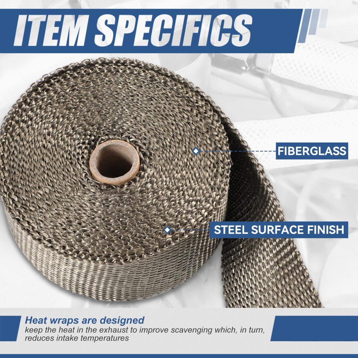 - Auto Dynasty Exhaust Header Heat Wraps Roll With 5 Steel Ties 2in X 30ft Fiberglass Shield Tape For Motorcycle Car Exhausts