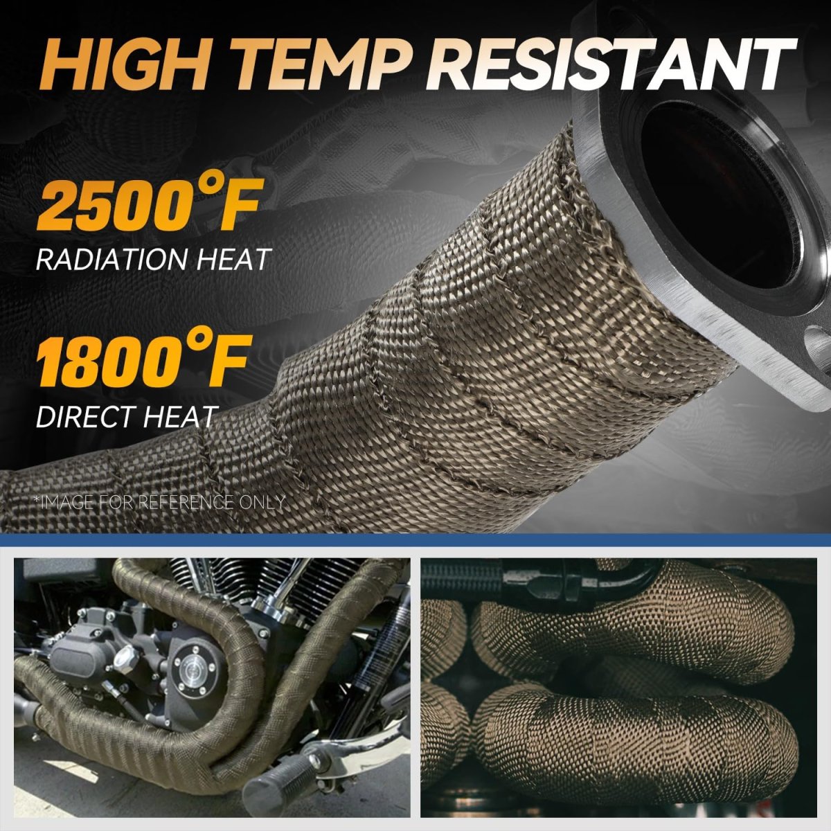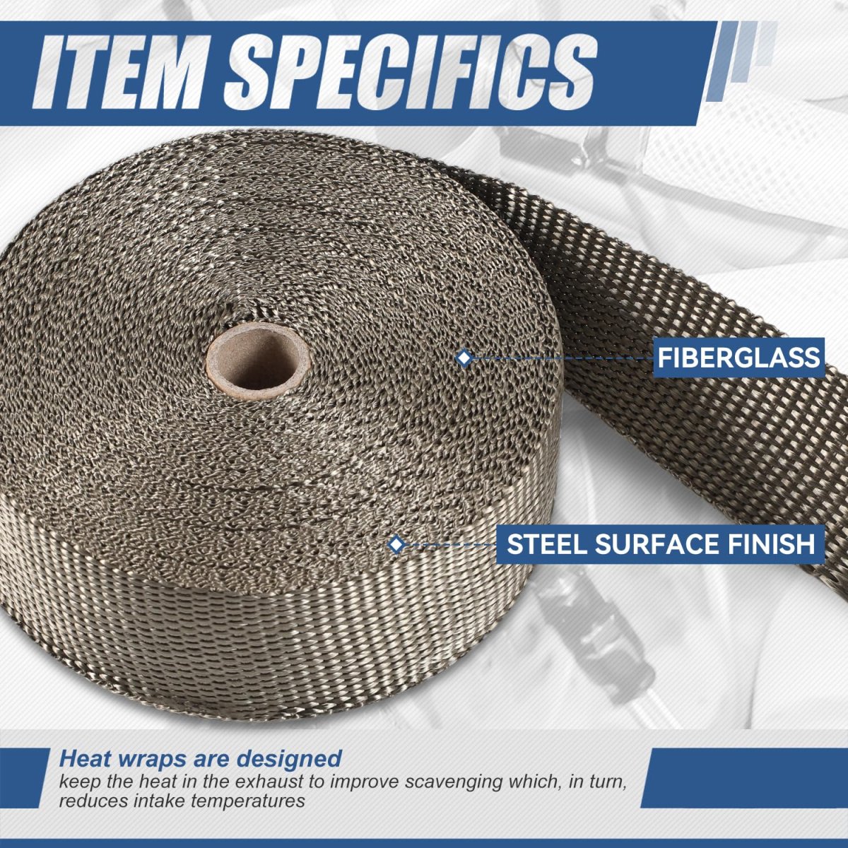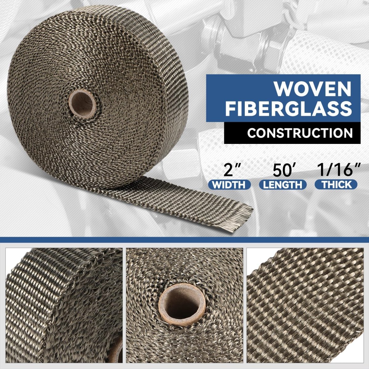 Vehicle Compatibility - Header Heat Wraps fit various car and motorcycle models, including exhaust systems and hot metal surfaces. Excellent Heat Resistance - Exhaust Heat Wrap is able to withstand 2,500F (Fahrenheit) radiation heat and 1,800F (Fahrenheit) direct heat. High Efficiency - Thermal heat wrap is engineered to significantly reduce under-hood heat by up to 50%, providing superior insulation and protection for your vehicle's engine compartment. Premium Materials Crafted - Woven Fiberglass fiber Construction offers exceptional durability and resilience, standing up to abrasions, oil spills, extreme temperatures, and vibration breakdown with ease. Overall Dimensions - 2.00" (Width) X 1/16" (Thick) X 600" (Length).Other fine products
